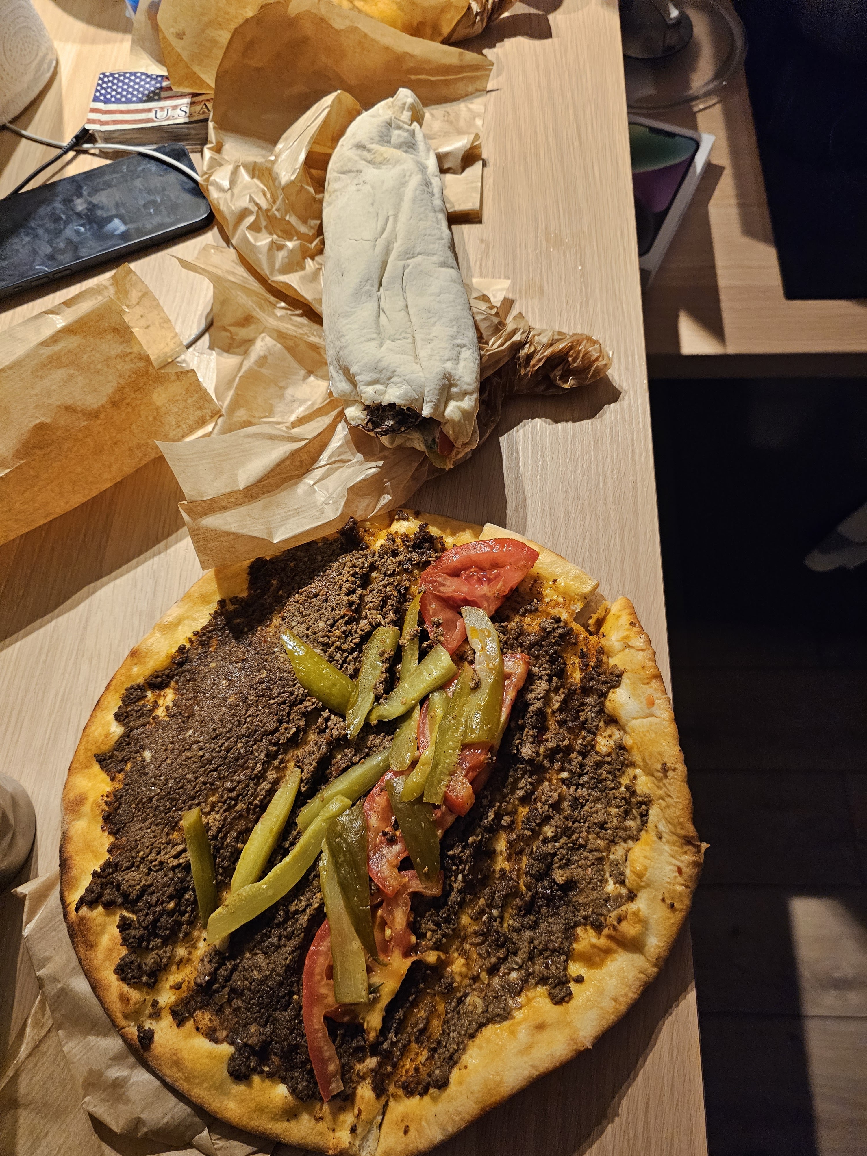 On a pris une aux fromages une au thym et une Lahm B'Ajin, a emporté, arrivé à la maison la pâte de celle au thym avait un peut durci, mais sinon c'était très bon !! Un vrai régal !!