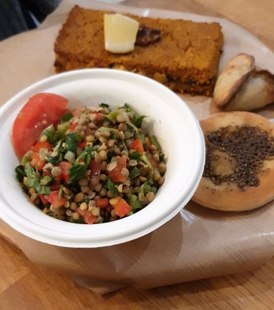 Magnifique découverte que cette bakery libanaise ! Les man’ouchés sont à tomber, les beignets et les salades sont parfumés, frais et savoureux… et le zaatar… pur bonheur gustatif… L’accueil est attentionné et souriant même si un peu timide au début, tout le monde a pris le temps de nous expliquer les différentes spécialités. Les plats nous ont transportés au Liban le temps d’un déjeuner, impression renforcée par le fait d’être une des seules tables n’étant pas d’origine ou parlant libanais… nous y reviendrons sûrement avec grand plaisir pour goûter les autres spécialités…