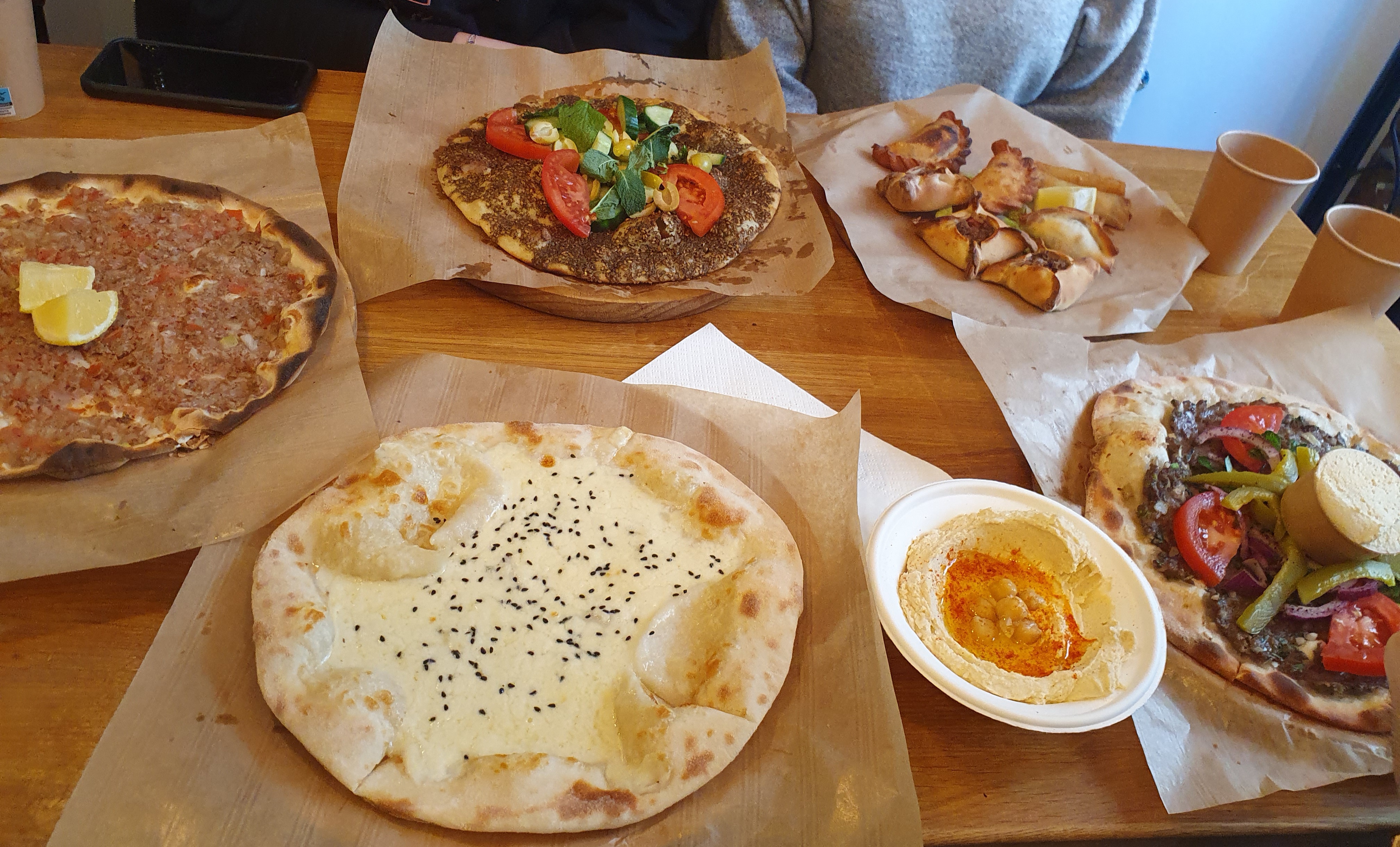 Un restaurant libanais de qualité!! Le personnel est accueillant et a l'écoute. On a commandé une Lahb'ajin qui était excellente, une au fromage et une Zaatar a emporté. Petit bémol une fois arrivé a la maison la patte de la zaatar a durci un peu, je vous conseille de les manger sur place pour plus de fraicheur!!