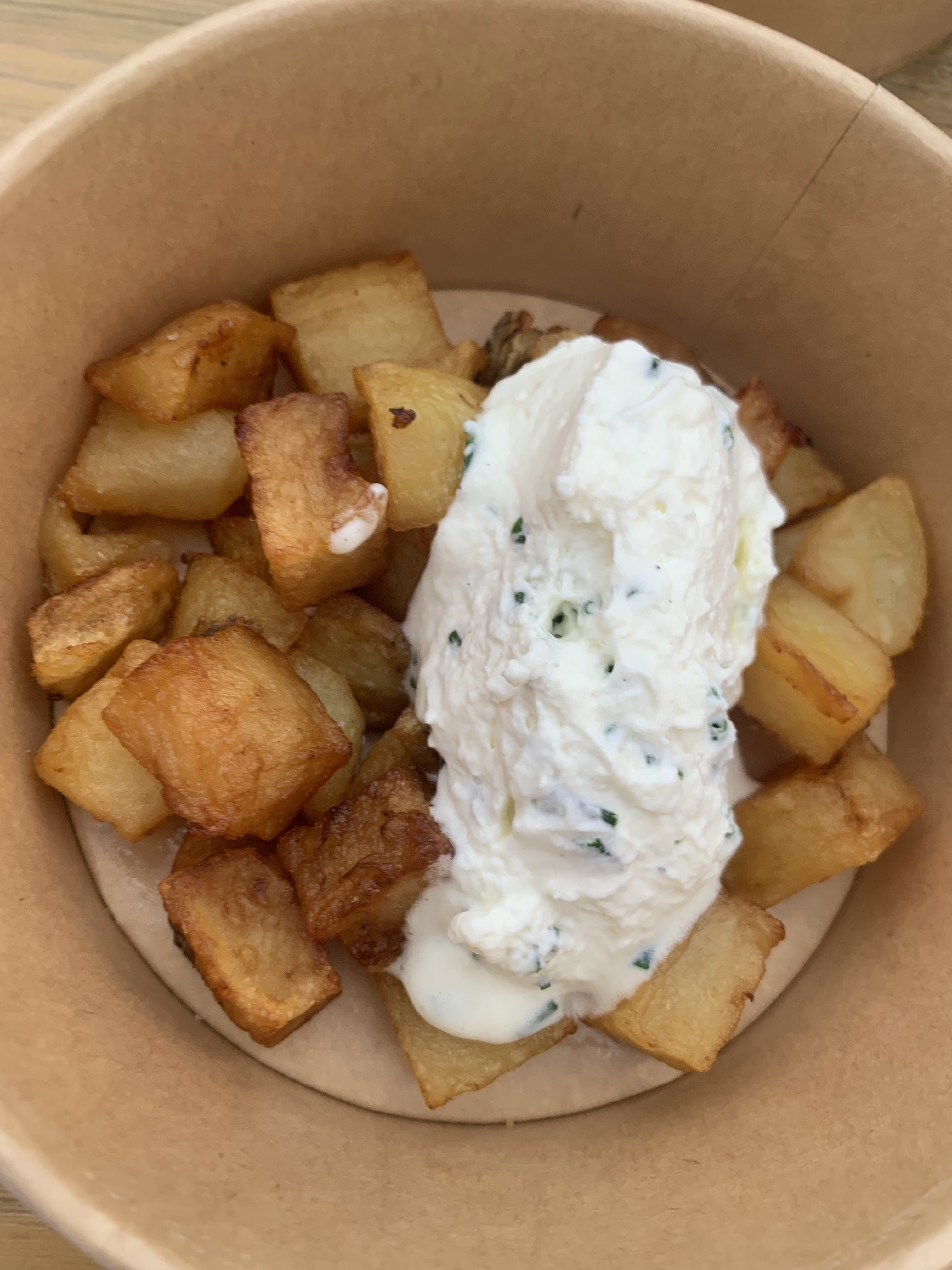 Assez bonne ambiance au pieds de la grand roue, super cadre en face de la Garonne. Les plats sont très chers: 14€ pour des entrées dans des boites à emporter. Les frites c’est en plus et c’est à 6€.