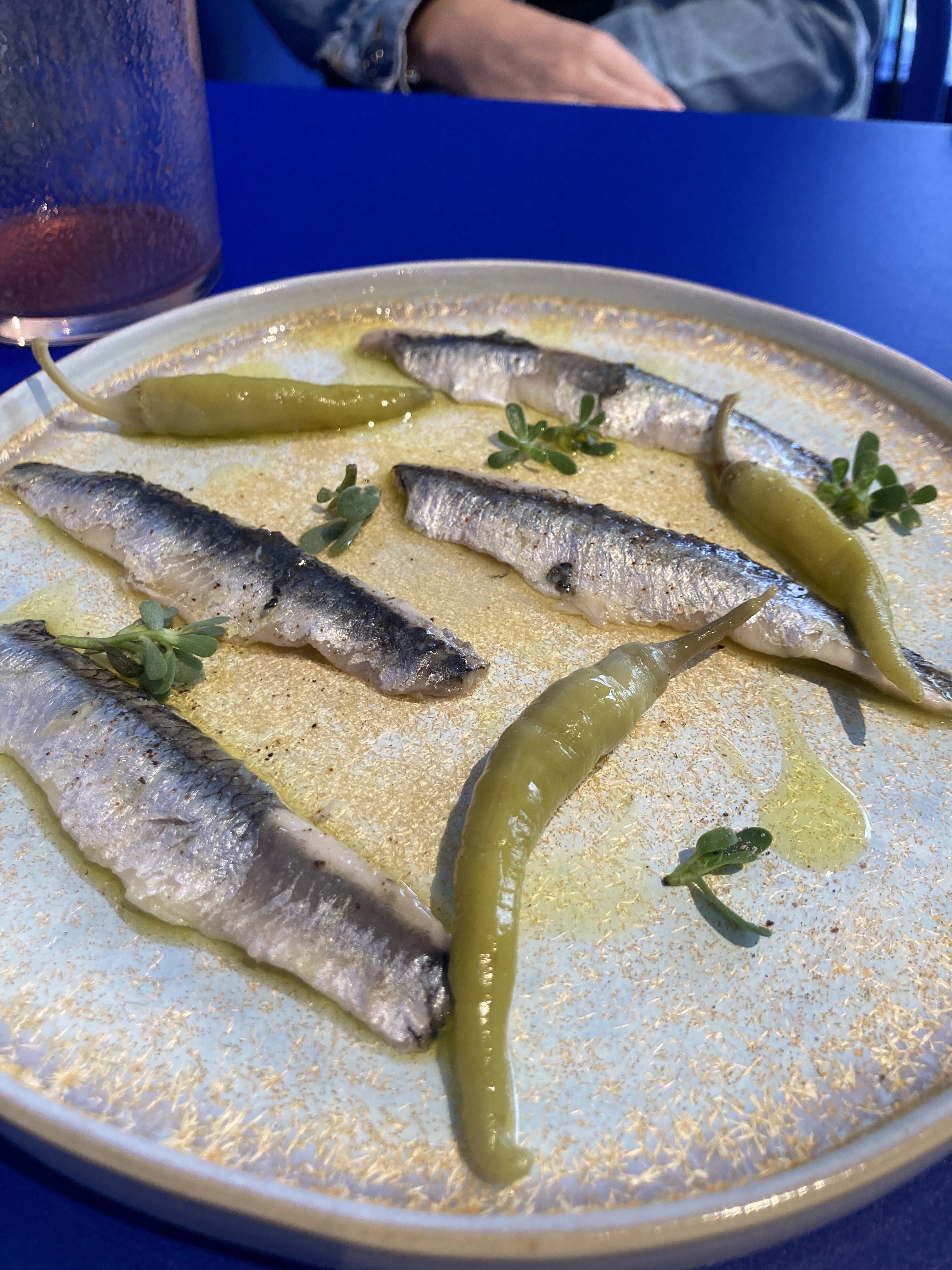 Rafales à Royan : le coup de cœur de mes vacances. Rafales est un lieu d’une beauté infinie, né dans l’esprit de Philippe et Laurence Lagarde. Dans ce restaurant de poche, préparez-vous à enchanter vos papilles. Ici vous trouverez des assiettes à partager, des produits bio et locaux sublimés et l’accueil délicat de Philippe et Laurence. Vous pourrez goûter des vins natures excellents toujours en étant très bien conseillé par Philippe. Enfin, il y a l’atmosphère : ce bleu Klein qui donne l’impression d’être dans l’océan, le mobilier qui se fond dans le décor. Cette sensation d’être comme enveloppée par le lieu a beaucoup joué dans mes ressentis. Donc si vous êtes de passage dans le coin, venez déjeuner ou dîner chez Rafales, pensez à réserver ☺️