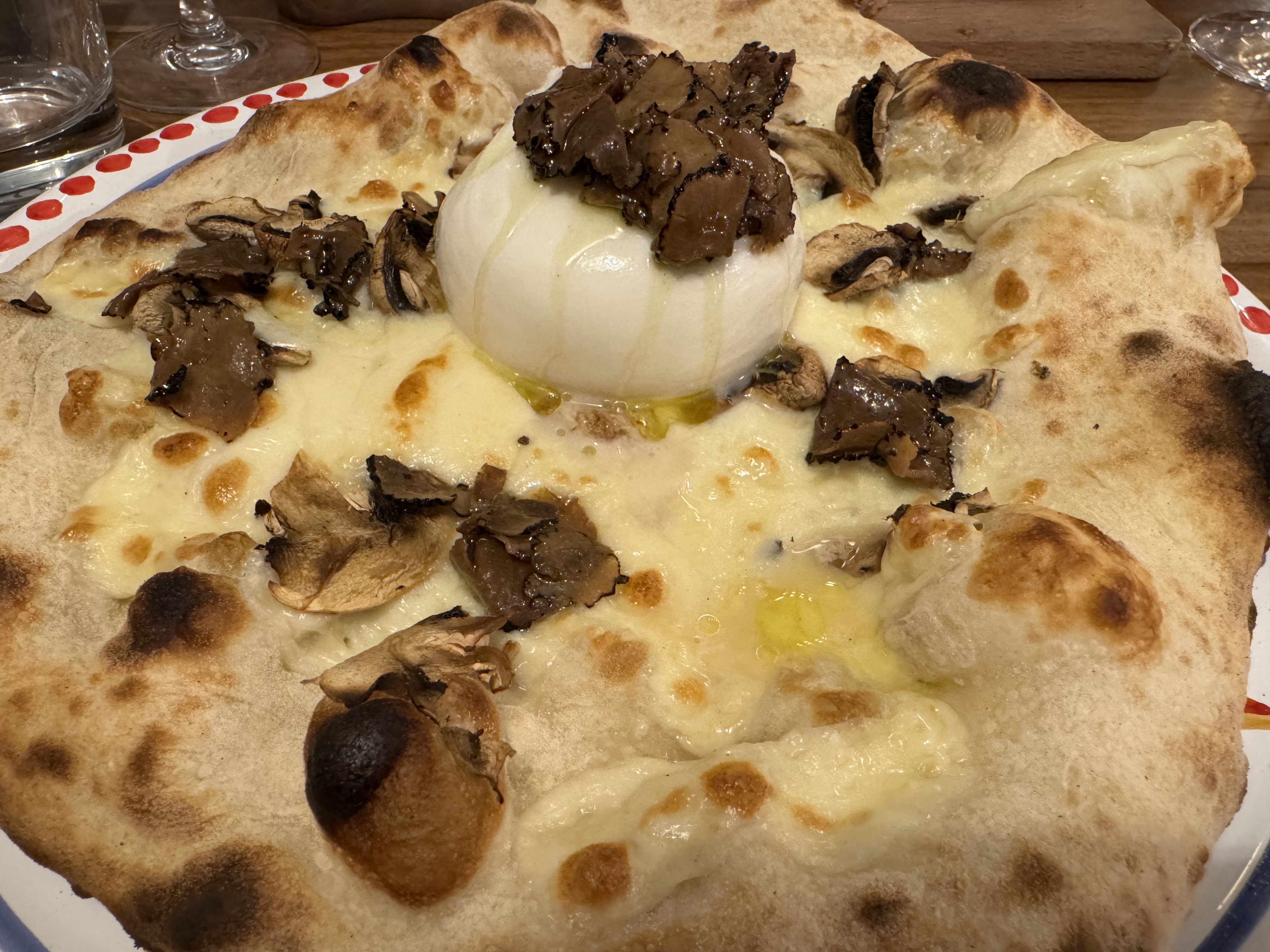 Une note pour le cadre et l’accueil car nous sommes en début de repas, mais tout donné envie et nous avons hâte de goûter les pizzas de nos voisins sont très appétissantes ;)