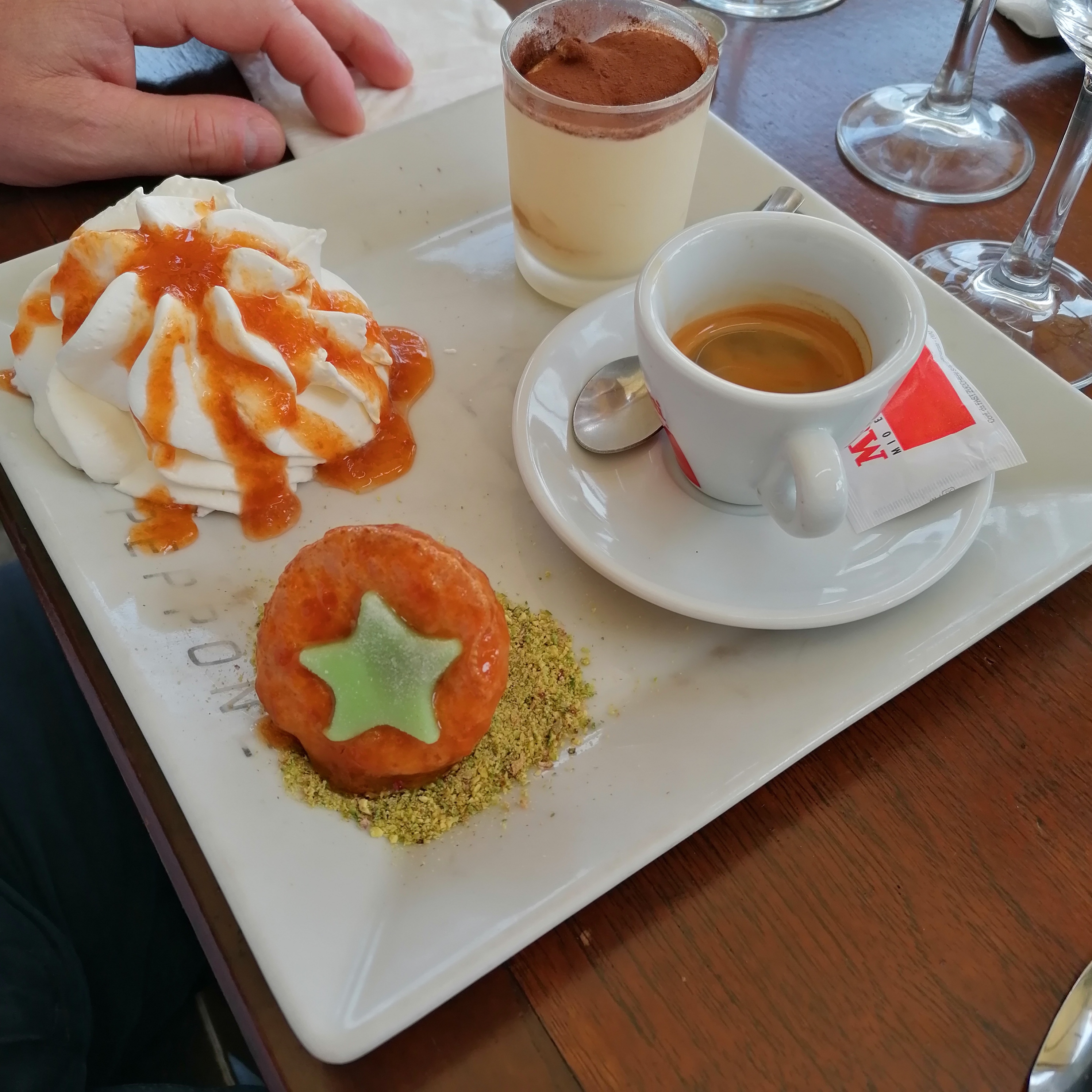 Endroit recommandé par une amie bordelaise ! C'était bien mais sans ➕. Justement il manquait ce plus pour rajouter une 5ème étoile 🌟. L'accueil était bien malgré le monde mais le monsieur faisait aussi le service donc il y avait de l'attente. Nous avons choisi des plats de pâtes avec carbonara et tagliatelles farcis et c'était bon mais pas très bon ! En dessert, choisi le café ☕ gourmand mais le goût des petits gâteaux était passé...cf photos. Dommage Par contre le vin 🍷 était bien!