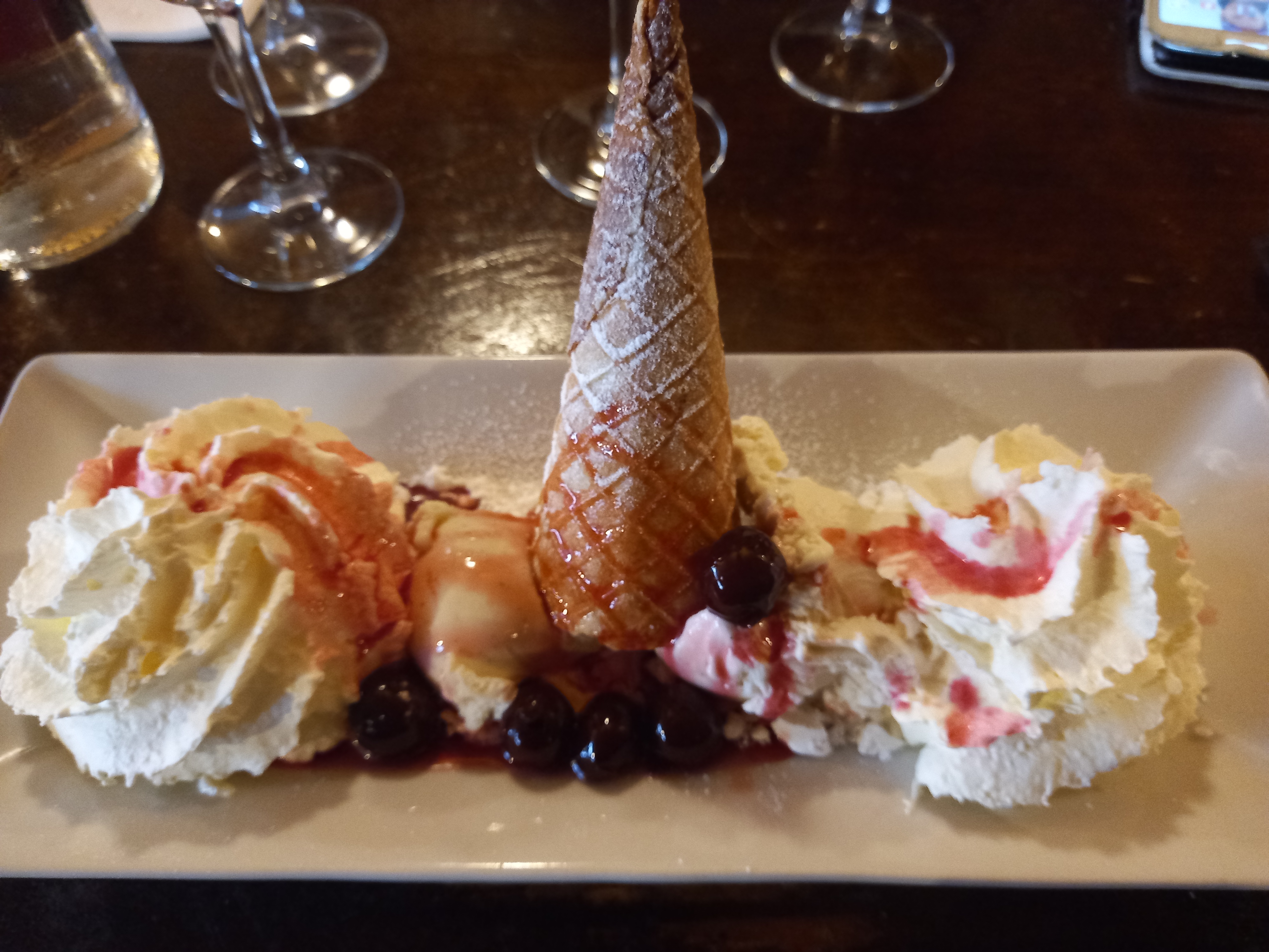 Typique style chaîne trois brasseurs. Pas la meilleure pizza que je connaisse et petits couacs dans le service Mais il y a de l'humour partout ça compense Le dessert en photo porte le nom d'assiette de merdouille