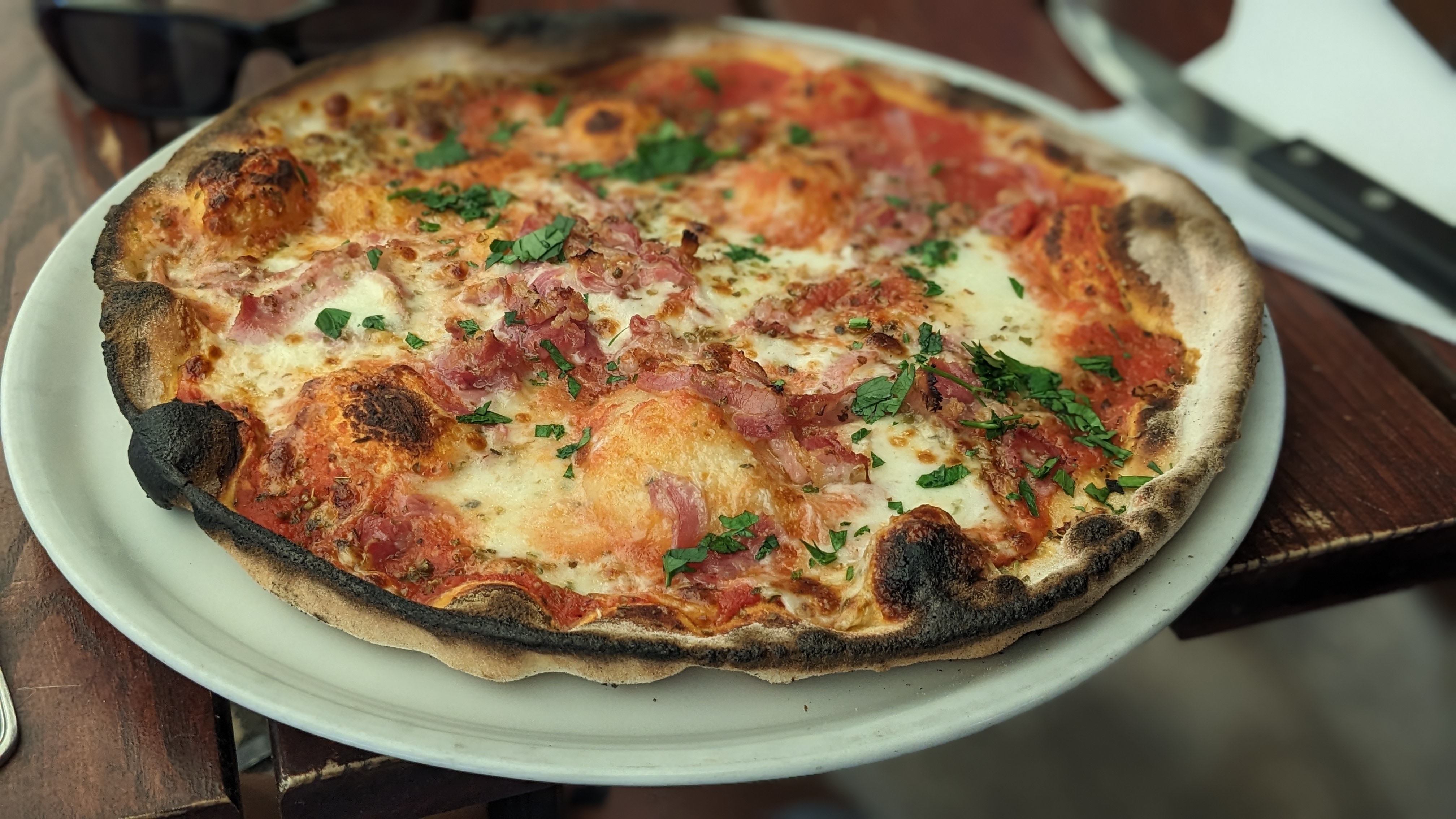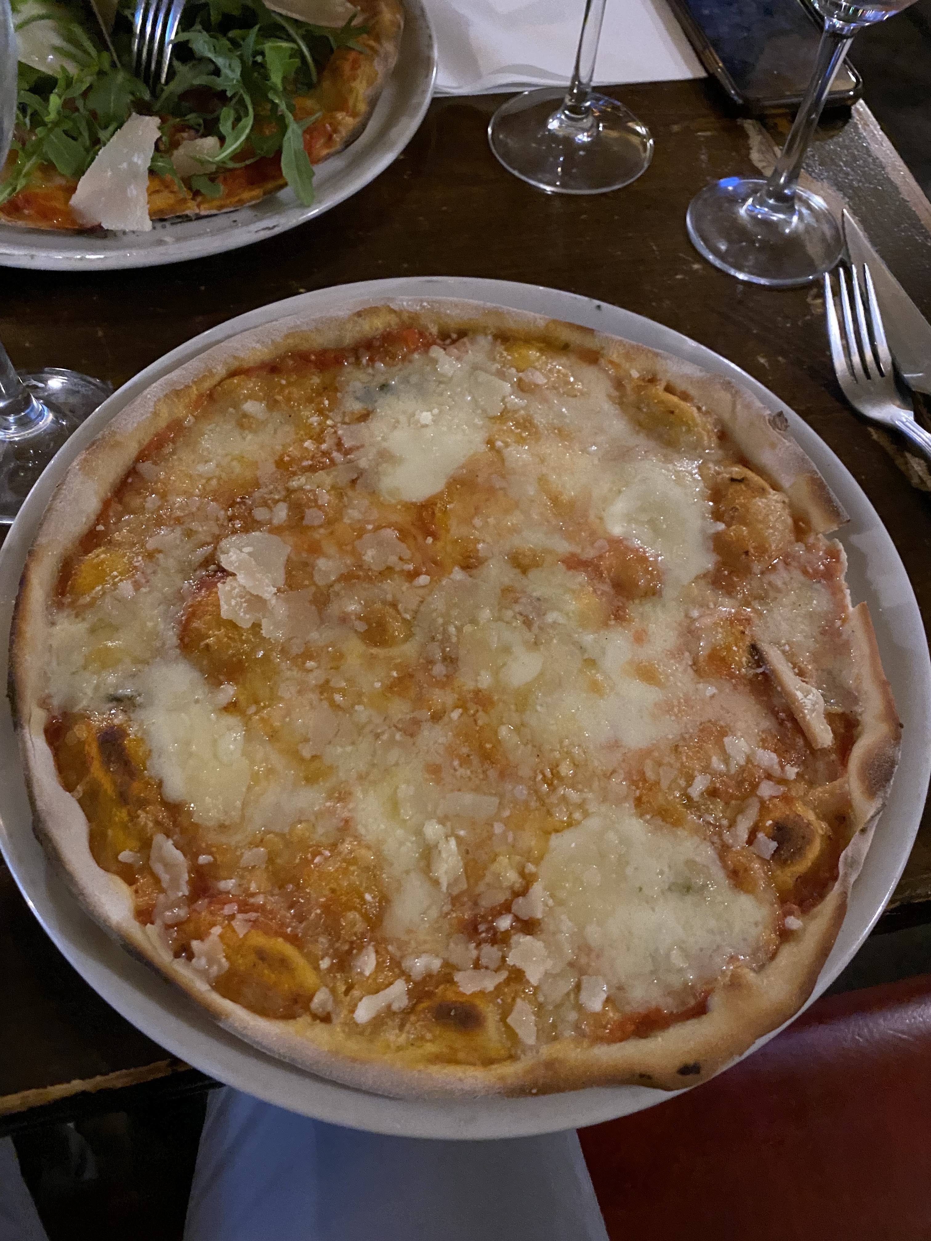 Nous avons dîner chez Ragazzi sur les conseils d’une amie, et nous n’avons pas été déçus. Nos 3 pizzas étaient très bonnes, avec une pâte fine, la mienne légèrement trop cuite (j’avais demandé l’œuf bien cuit, au lieu de mettre l’œuf dès le début, il a du être mis trop tard et donc devoir sur cuire la pizza). Le service a été rapide alors que le restaurant était rempli. Nous avons dû dîner dehors par manque de place mais cela ne nous a pas dérangé, la terrasse est vraiment sympa et il faisait très beau. Le tarif des pizzas un peu élevé, comparé à Paris, même si c’est une zone touristique (puisque Paris l’est aussi). Mais si les produits sont vraiment d’origine italienne, ça peut se justifier ! Petit bémol mais comme beaucoup (trop) de restaurants : l’absence de chaise bébé. C’est quand même dommage en 2023 d’avoir aussi peu d’endroits Kids Friendly !