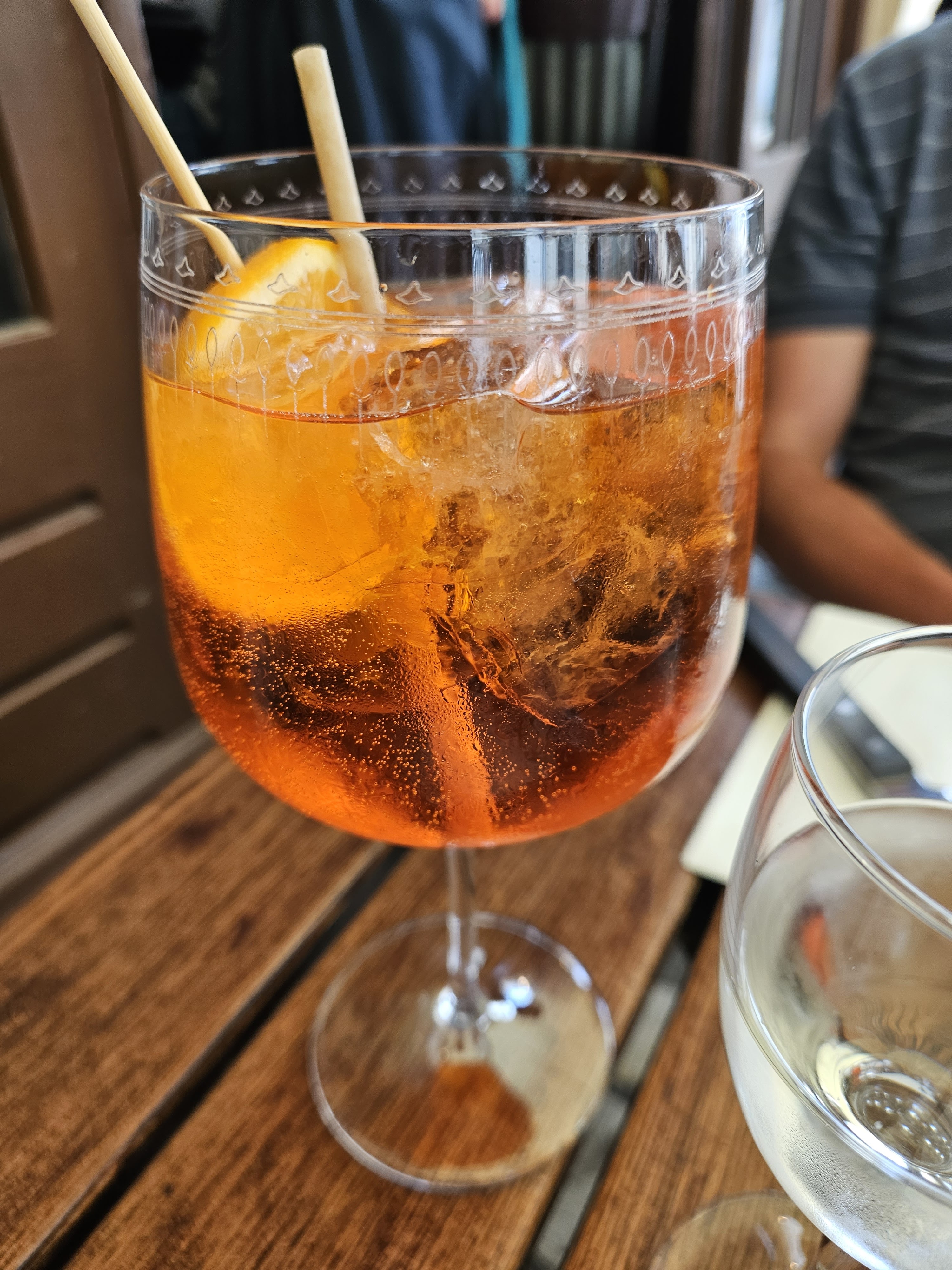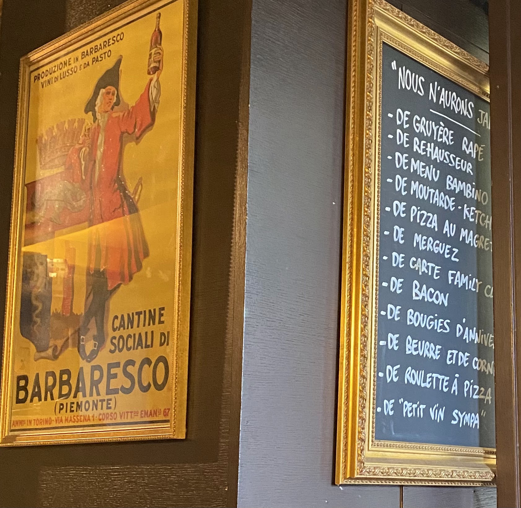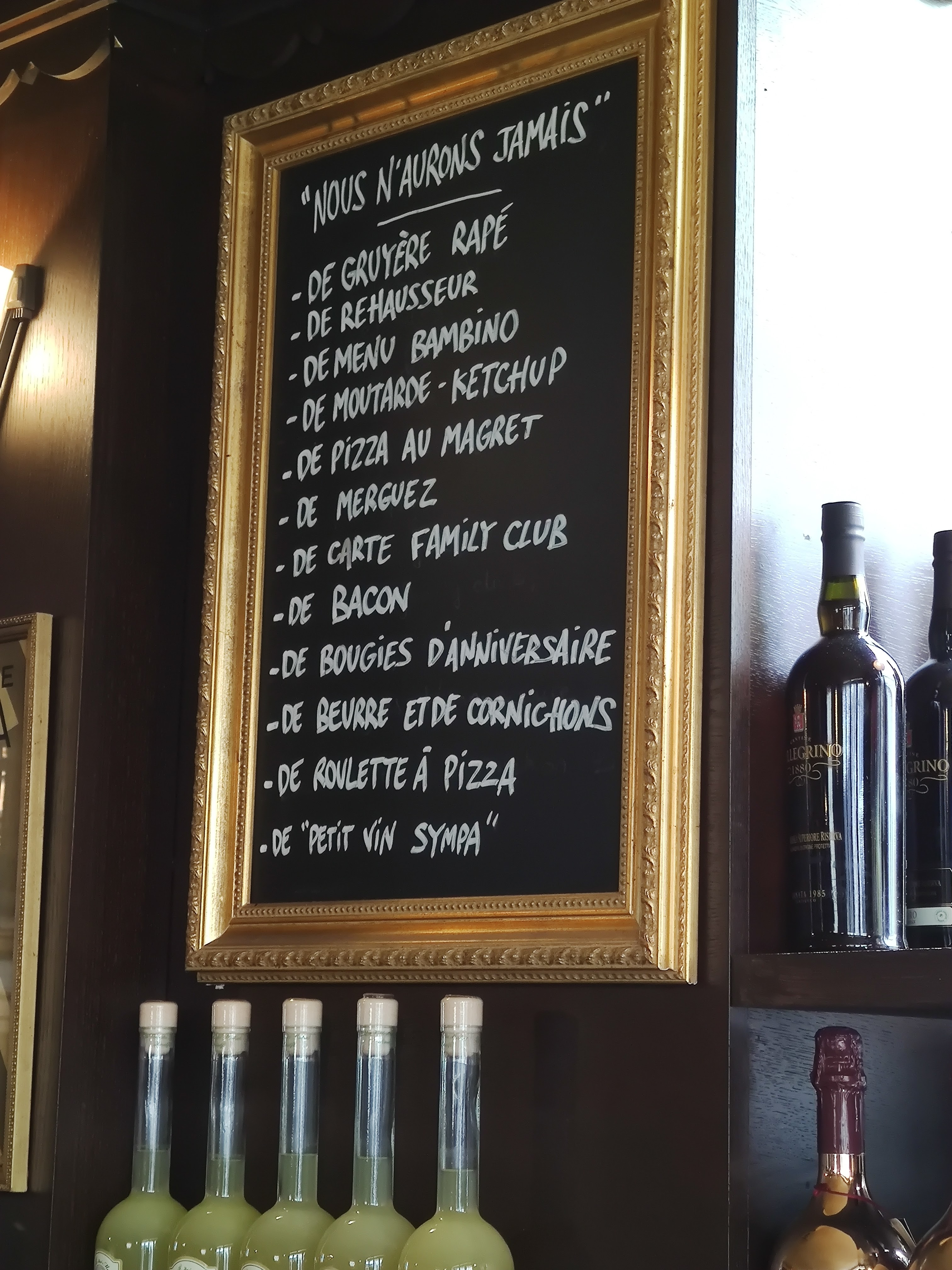 Excellent restaurant italien, qui ne fait aucune concession à la francisation des plats, comme le montre une de mes photos. L'affichette ne manque pas d'humour d'ailleurs. Très bon Lambrusco, vin rouge pétillant on ice et mocktail de Spritz appelé Sprout. Le service était un peu long mais le restaurant était bien plein. Terrasse dans une rue piétonne agréable et calme.