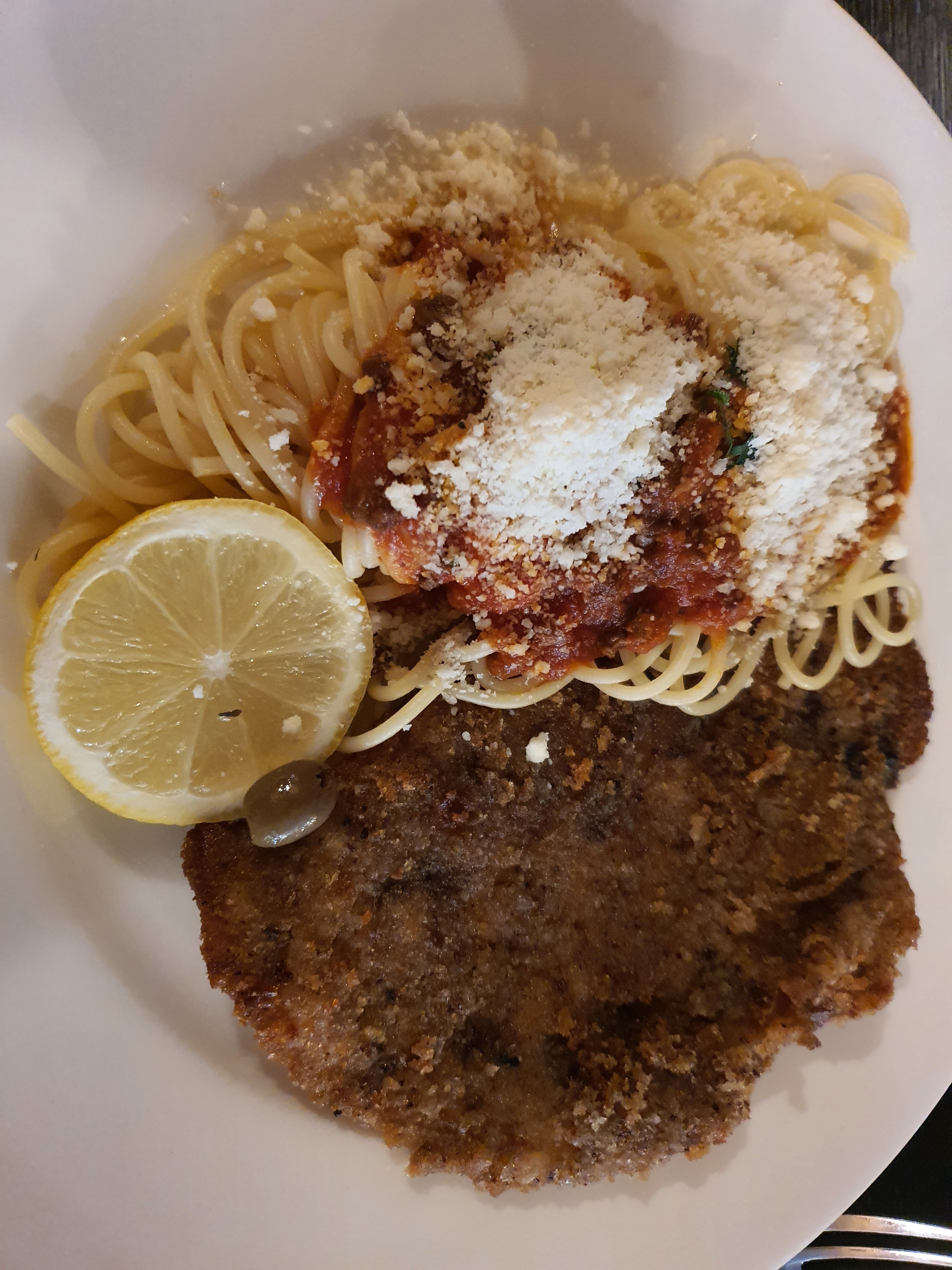 Avis mitigé, l’escalope à la milanaise bonne , un peu déçu par la pizza . Les tiramisu sont excellent, le service est top et rapide