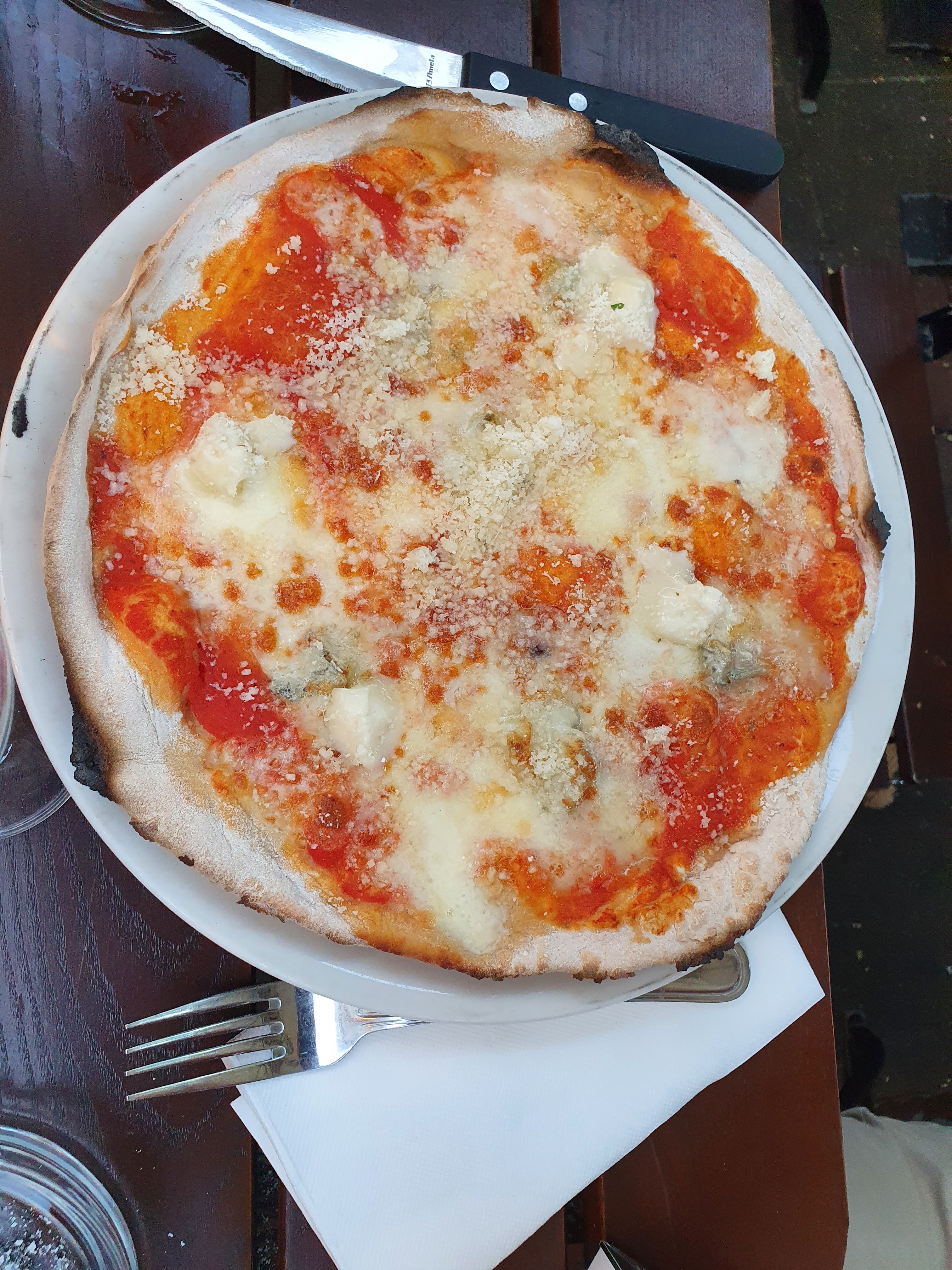 À fuir pizza 4 fromage c'est le parmesan que j'ai ajouté qui à donné un semblant de goût. Les carbonaras de ma femme sec et les pâtes mal cuites les bolos des enfants une mauvaise photocopie de celles que nous préparons ( oui ma femme tient un restaurant donc nous sommes compréhensifs et gourmands) . Enfin l'addition 143€ , exigée par des jeunes n'ayant pas conscience que les prix sont 30 % surcotés. Bref non non non .