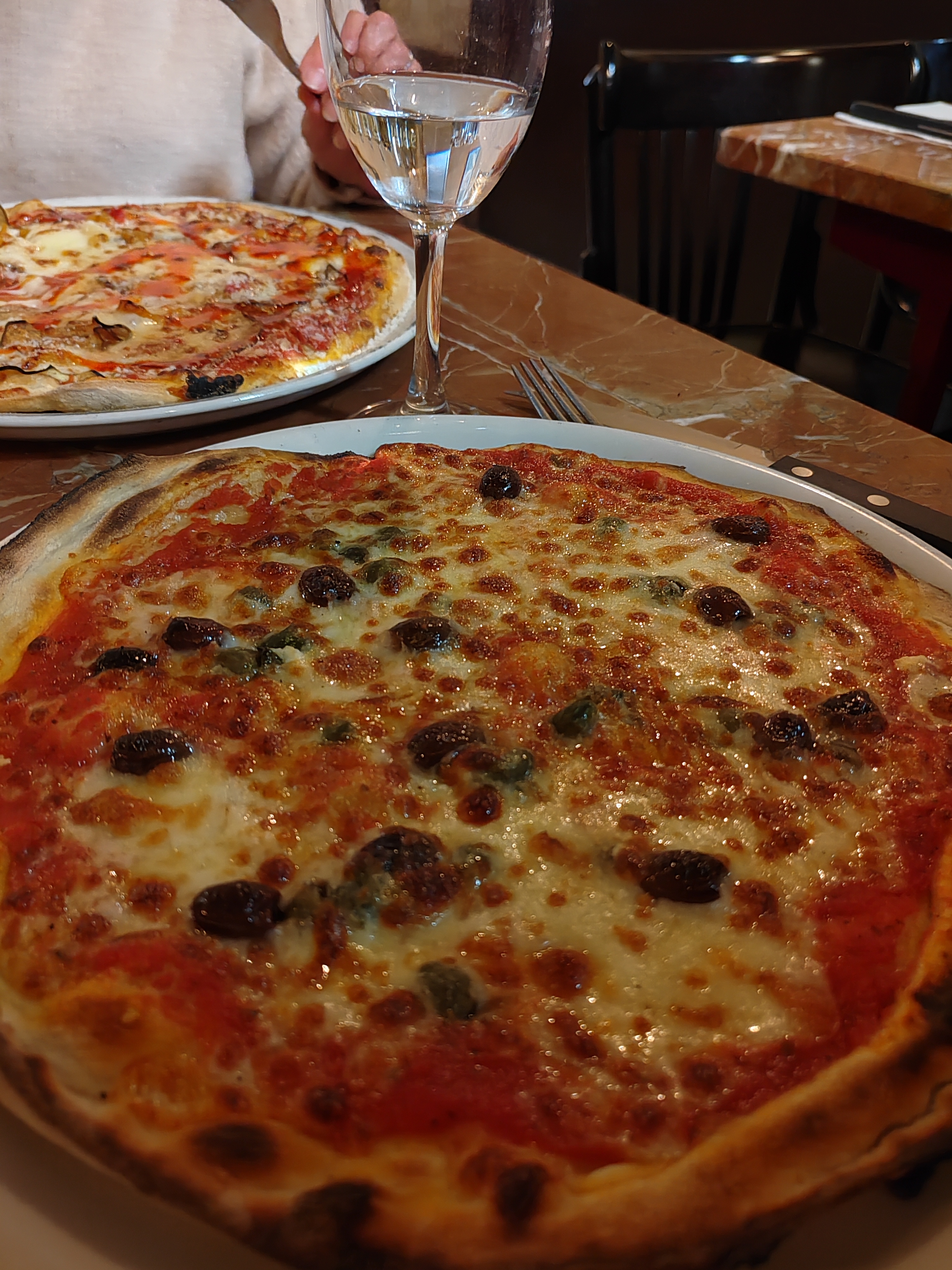 Les pizzas sont très chères tout comme les pâtes et les crostinis. Aucun de ces plats n'a quelque chose d eparticulier et chacun peut le faire chez soi. Même la pâte de la pizza est si fine que l'on dirait une flammekueche. Franchement quelconque sauf le prix ! Je signale également que les poussières de la décoration intérieure ne sont visiblement pas faites ! Le service était en revanche correct et souriant. Seul problème, à 22h ils ont ouvert les portes d'entrée, laissant le froid climatiser la salle. Sans doute un moyen de nous demander indirectement de partir, le cuisinier ayant quitté les fourneaux.