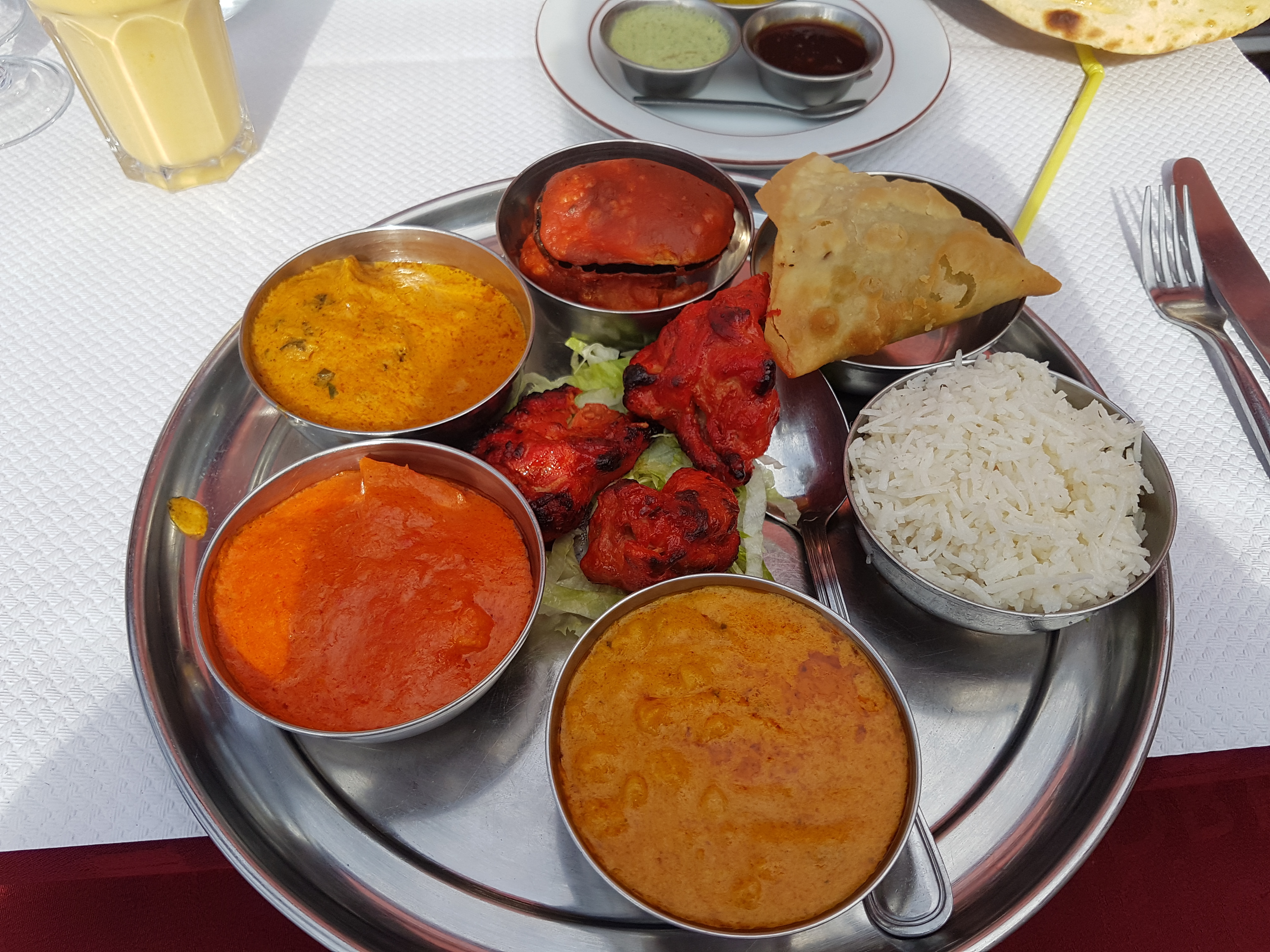 Le poulet tandoori est très bon l'entrée n'est pas assez copieuse les places en très bon aussi cependant les desserts je ne recommande pas mieux vaut prendre un dessert autre part