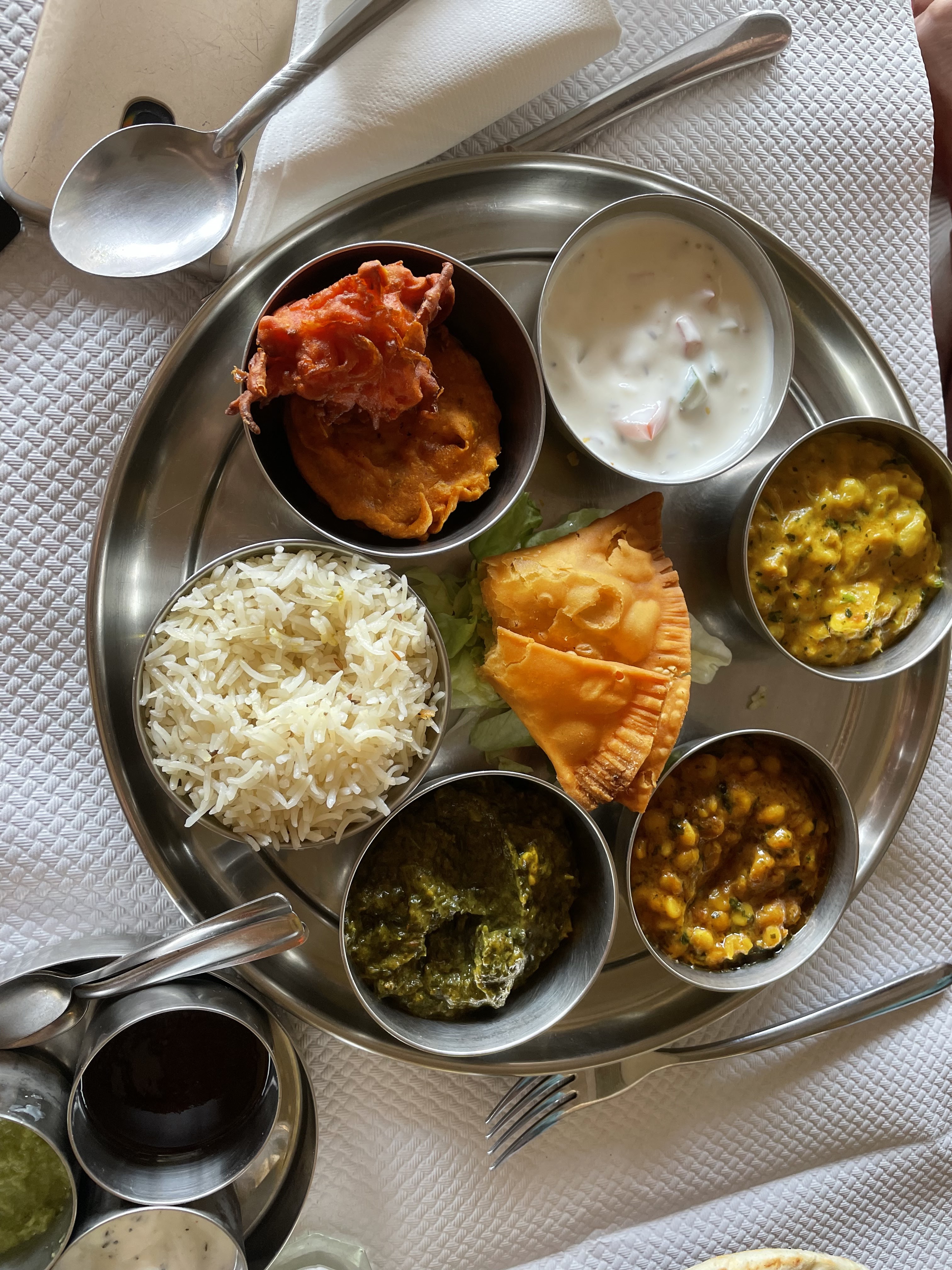 Super restaurant indien. Les plats sont très bons. On y mange copieusement. Les tarifs sont corrects. Les serveurs sont agréables. Il n'y a pas trop d'attente. Je recommande de prendre le Thali qui est une composition de plusieurs petits plats. Les epices ne piquent pas. Les plats sont servis bien chaud comme il faut pour les manger. Je recommande aussi pour boire le lassis maison à la mangue. Un peu cher lui mais sympa.