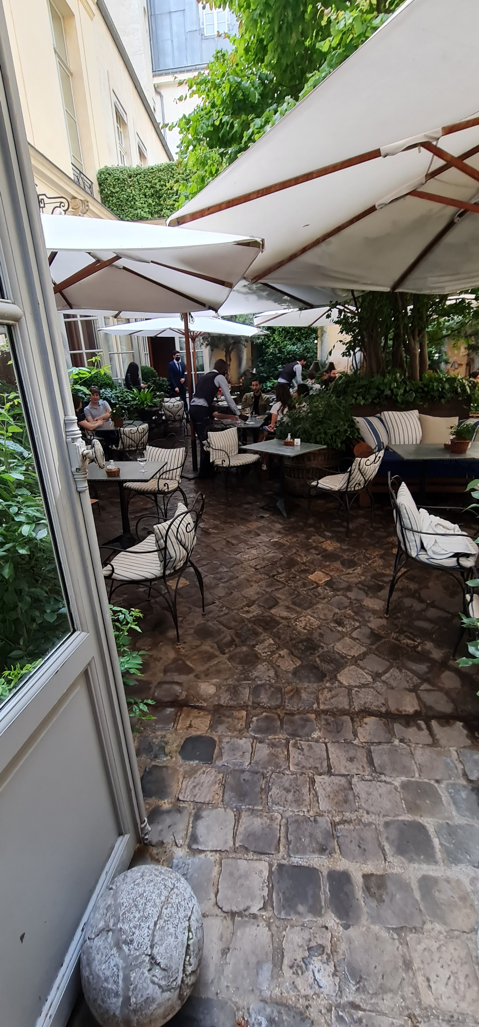 En plein cœur de Saint-Germain, une cour intérieure, un jardin fleuri, à l'abri des regards, nous ouvre ses portes. Un véritable enchantement, un coup de cœur bien au-delà de nos espérances... Tout n'est que délicatesse tant dans la qualité des mets, qu'à l'égard que l'on nous porte. Je suis très heureuse d'avoir offert ce moment à mon fils, conquis, et d'avoir été moi aussi, à ce point séduite. Merci.