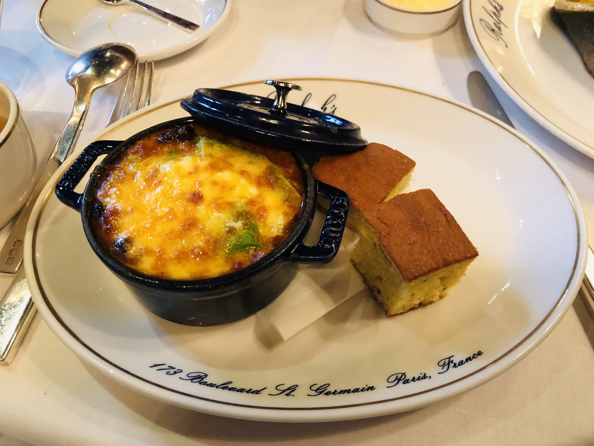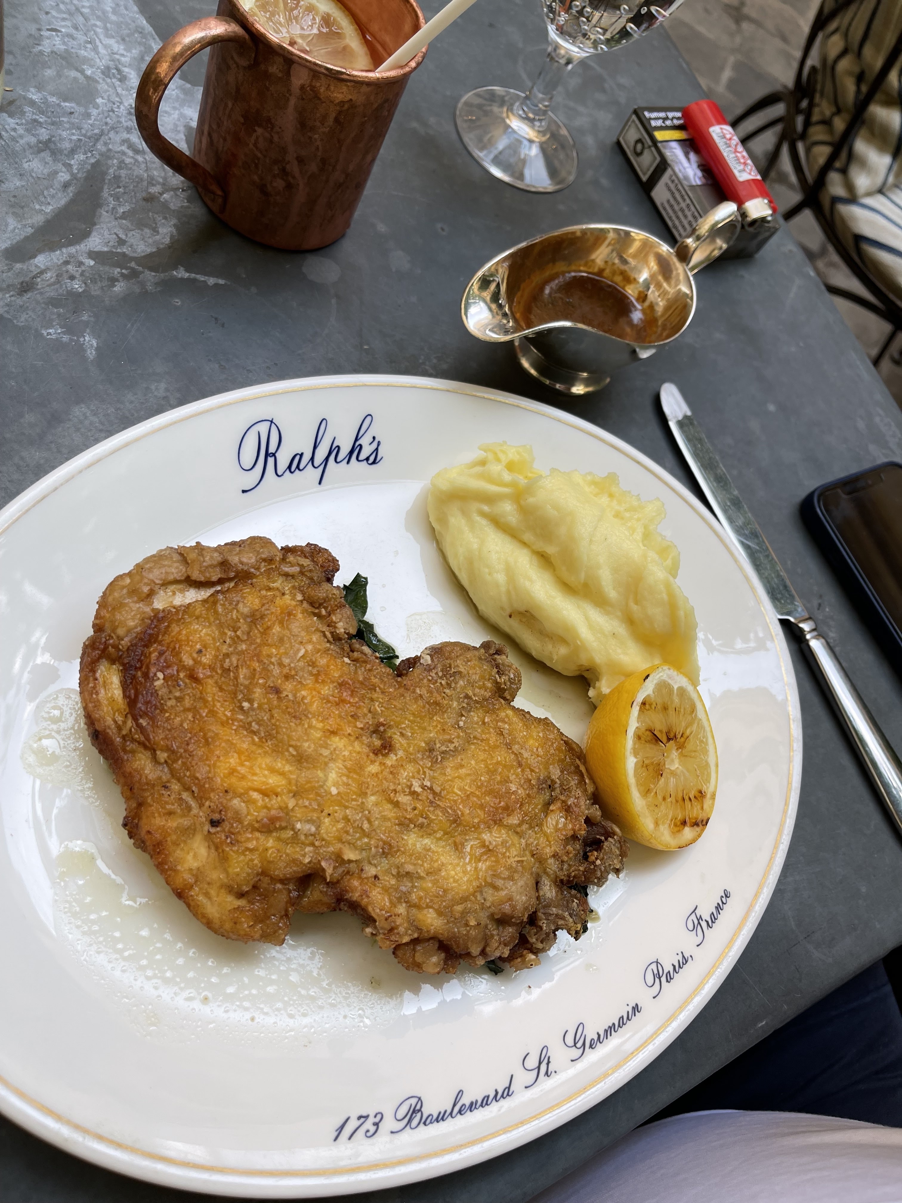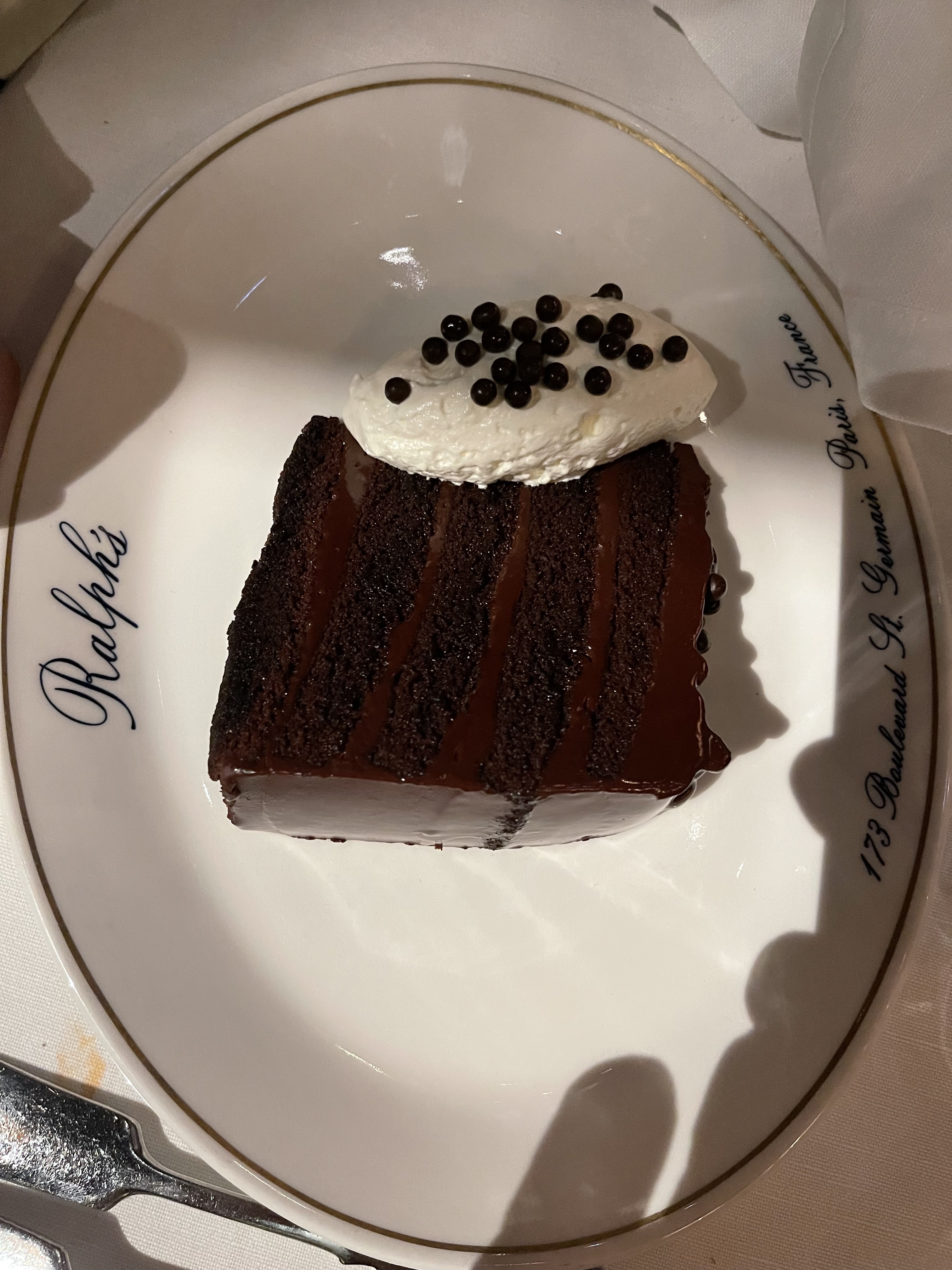 Nous venons de New York (à la fin de notre lune de miel) et nous sommes ravis de visiter Ralph's pour un déjeuner paresseux l'après-midi. Il n'était pas surprenant que la nourriture soit délicieuse. Nous avons eu les mini rouleaux de homard avec le hamburger et la salade Cobb à partager. Le personnel et le directeur étaient charmants et arrangeants. C'était vraiment une belle façon de passer notre après-midi à Paris. Nous avons également découvert que nous étions assis à la table préférée de Ralph : quel privilège ! Merci 😘