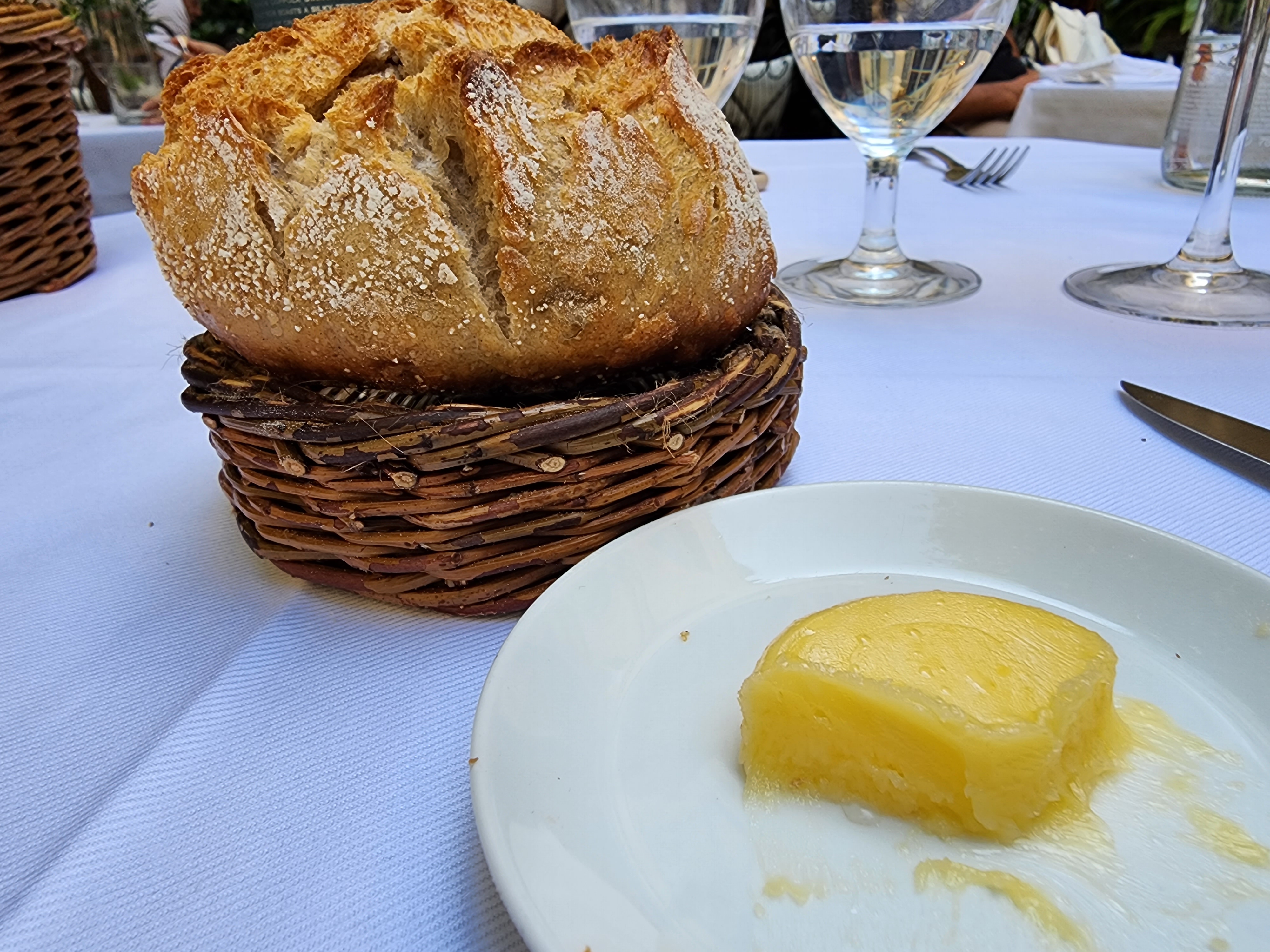Le jardin est absolument magnifique. Ce que j'aime le plus, c'est le personnel ici, tout le monde est très sympathique, surtout un serveur de notre table (sur la deuxième photo), il a fait attention à notre table et nous a versé de l'eau à chaque fois que nos tasses sont basses, il a suggéré d'en prendre des tonnes. de belles photos pour nous au restaurant car nous sommes venus en couple. Je veux vraiment vous remercier même si je ne connaissais pas son nom, mais il est allé bien au-delà des attentes des clients. La nourriture était bonne et leur beurre, pourquoi est-il si bon et différent. J'adore leur souci du détail. Assez cher quand même, 27€ pour un cocktail et nous avons dû payer la bouteille d'eau.