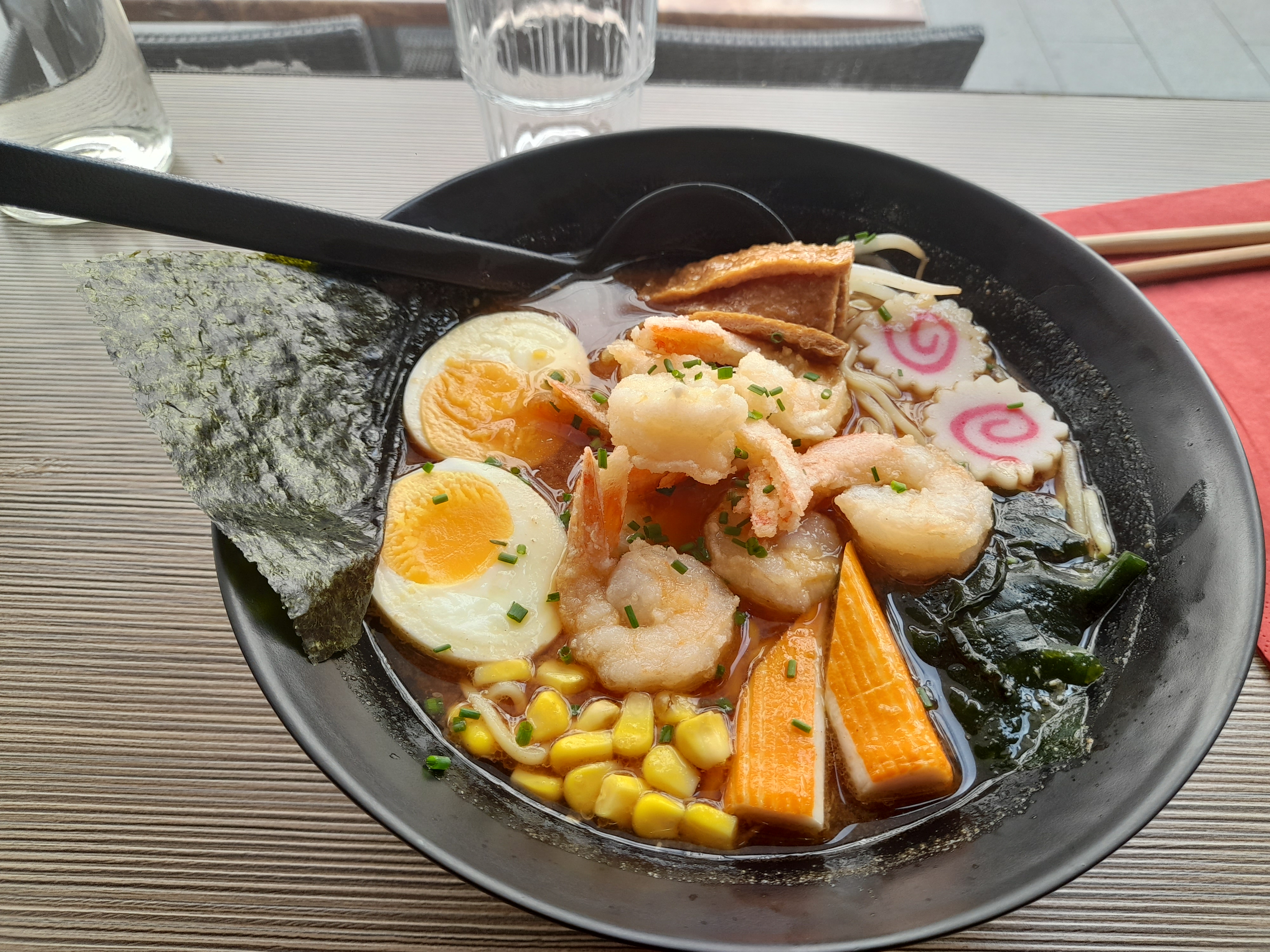 Service correct. Les nouilles ramen juste bien : ne correspond pas à l'image (œuf au plat au lieu de molle, pas d'algues). Les gyozas et tempura étaient bon. Seul point que je recommande dans ce restaurant. Ne pas avoir de concurrence ne permet pas une qualité de la sorte.