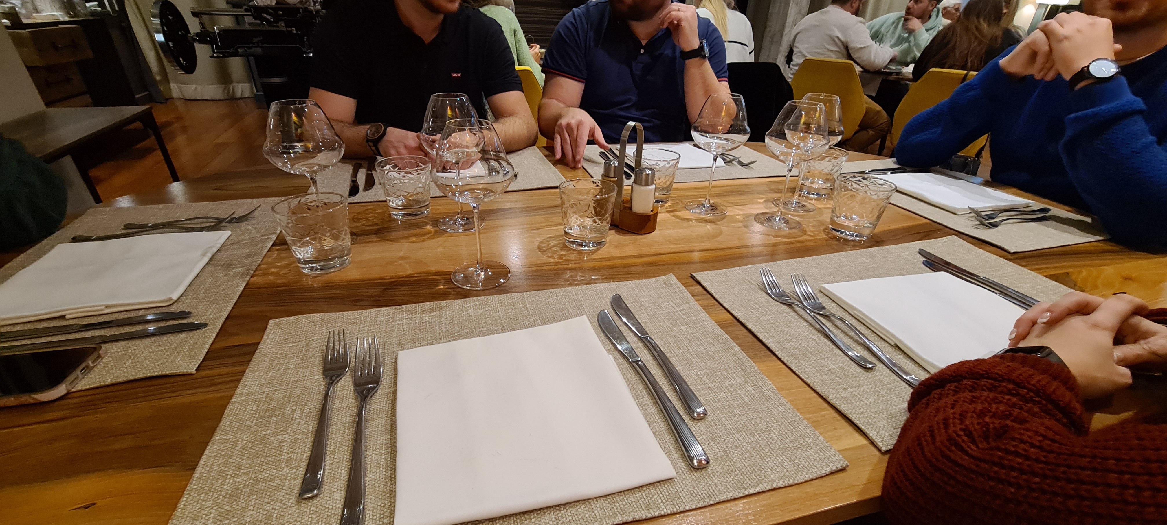 Nous étions 6 personnes, sans réservation, la serveuse nous a proposé une table mais a tout de même insisté en nous demandant si nous étions conscients des prix du restaurant affichés sur le pas de la porte avant même que nous nous installions - car il s'agissait ici d'une cuisine raffinée/élaborée où je cite on ne commande pas de plats de pâtes. C'est très aimable de sa part. Au prochain clients - s'il vous plaît - afin de rassurer cette gentille dame en ce contexte économique, je vous prie bien vouloir vous presenter en toute bonne forme avec une caution et des garants solides.