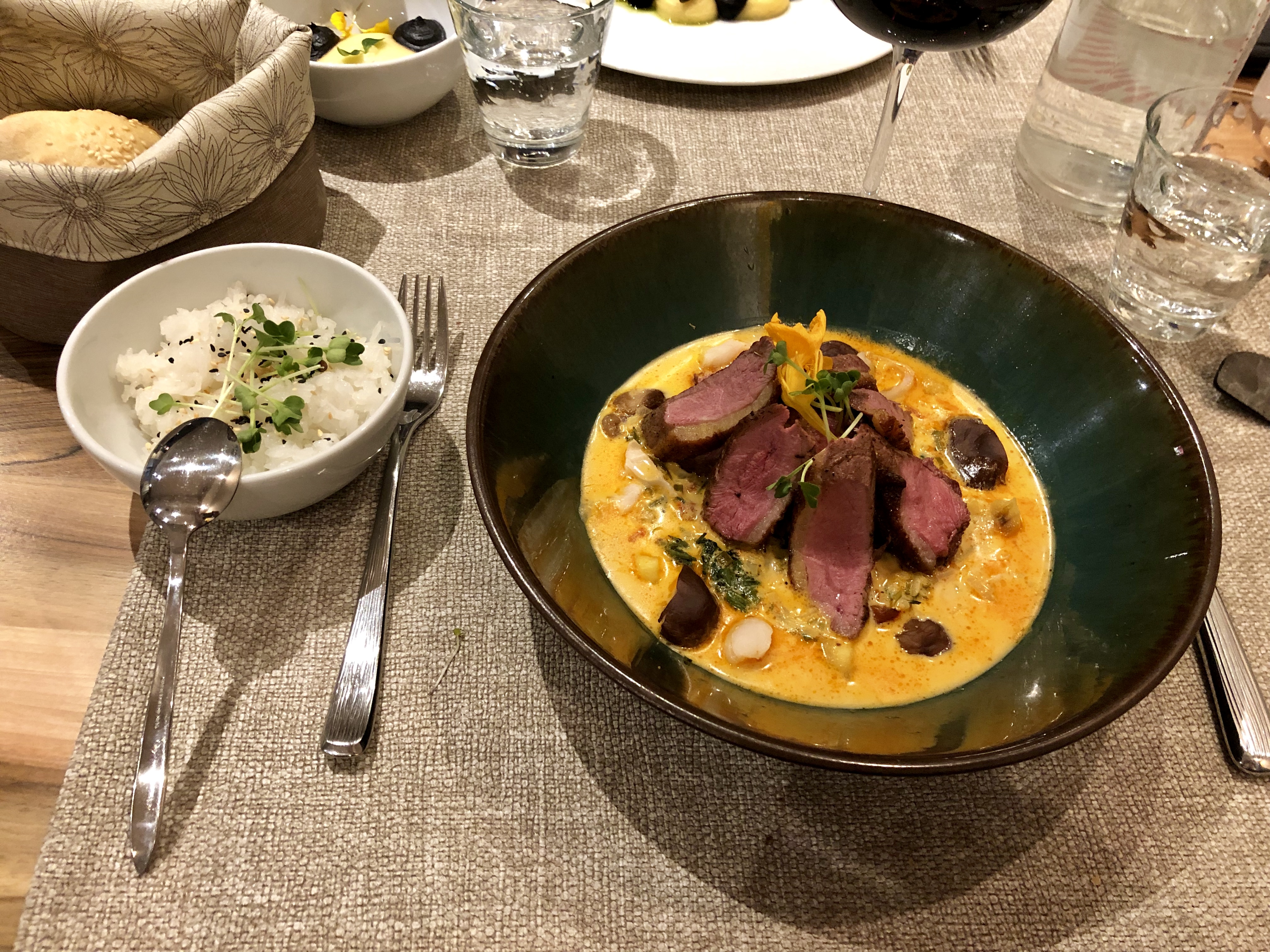 Rien de particulier si ce n'est que j'ai dégusté un des meilleurs plats de ma vie ! Lasagnes ouvertes de ris de veau aux cèpes (dénomination approximative), les mots me manquent!..