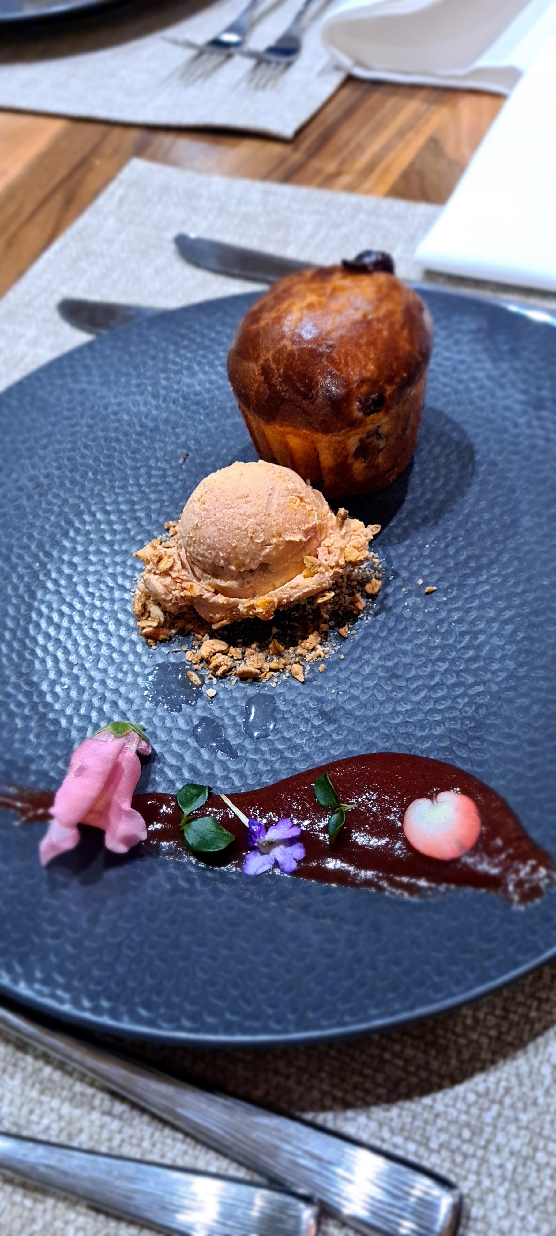 Nourriture vraiment intéressante. Le goût et la qualité sont de premier ordre. Les côtelettes d'agneau étaient vraiment bien préparées. Et le fondant au chocolat était hors de ce monde.