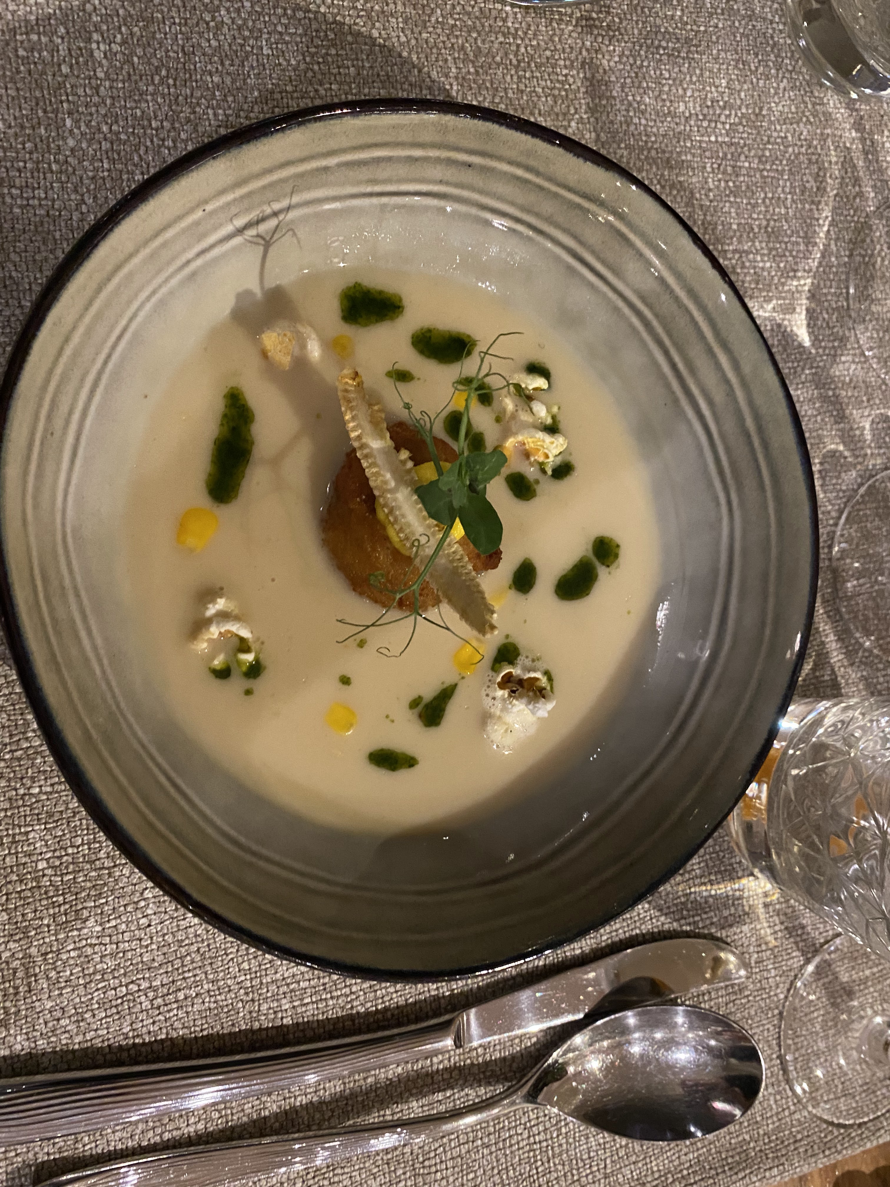 Ce restaurant était absolument magique. L'ambiance était agréable. Les boissons étaient super. Après avoir commandé notre nourriture, ils nous ont immédiatement apporté à chacun une petite tasse de soupe au poulet qui était si délicieuse. Puis, quand nos plats principaux sont arrivés, ils étaient si beaux. J'ai eu le carré d'agneau et ma femme a pris le burger au poisson. Pour que cette critique soit courte, je dirai simplement que la nourriture était super délicieuse et que j'ai mangé des choses que je ne mangerais pas normalement, mais cet endroit les a si bien préparées. Le personnel était sympathique et super efficace. Encore une fois, les desserts étaient extraordinaires. Si délicieux. Nous avons évidemment adoré cet endroit et il devrait être un restaurant étoilé Michelin si ce n'est pas le cas. C'était vraiment une excellente expérience culinaire.