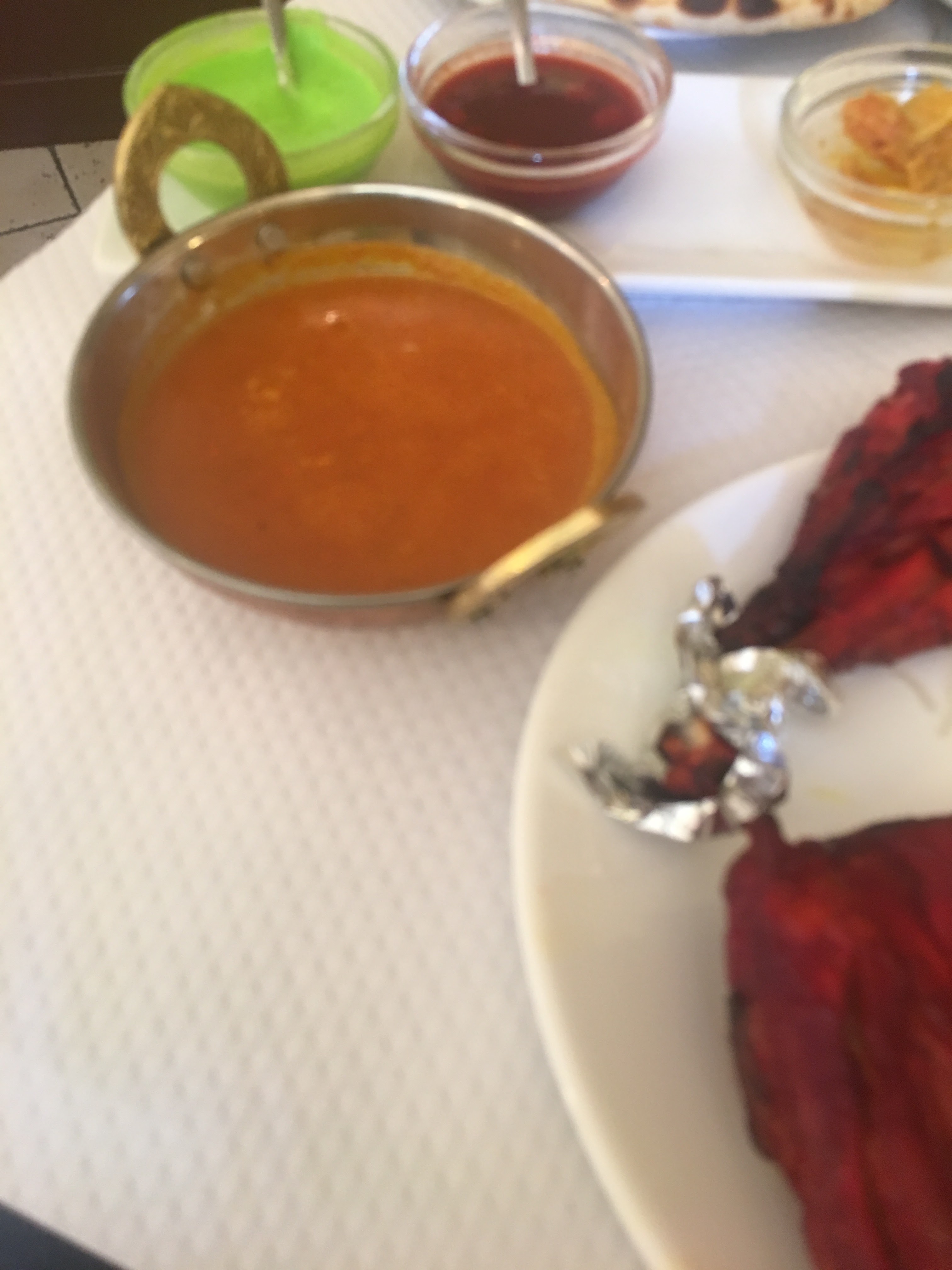 Je ferme les yeux et…. J’entends les éléphants frapper du sol, le curcuma me chatouiller le nez et un turban s’enrouler autour de ma tête ! C’est le meilleur indien que j’aie manger, foncez y. Ils m’ont d’ailleurs offert un thé à l’argile, je ne me serais jamais douté que la terre puisse avoir un aussi bon goût. Je vais peut-être goûter celle de mon jardin (humour).