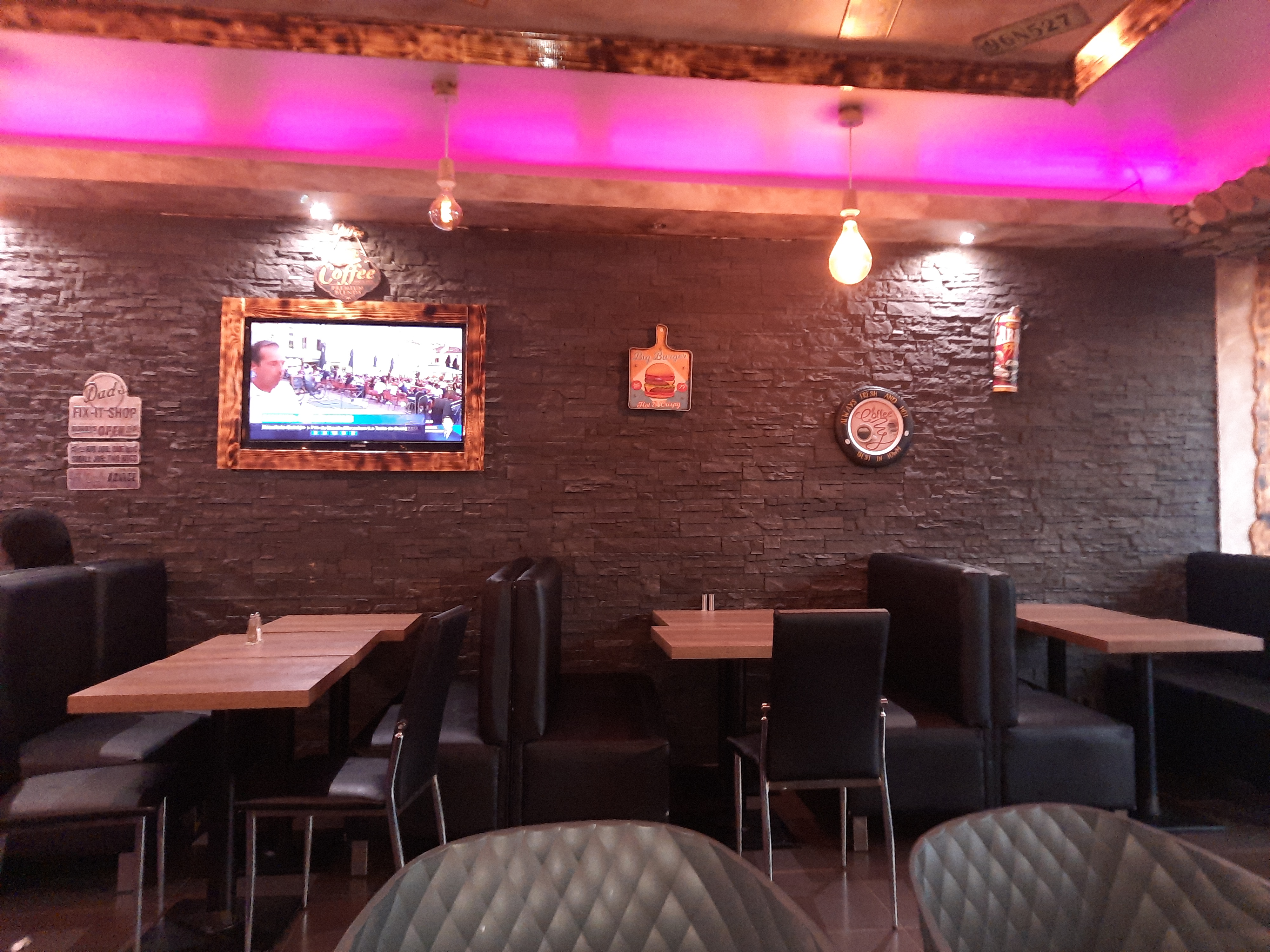 Burger très bon et de qualité. Je recommande fortement. Un conseil au gérant du restau : rajoute de la lumière parce qu'il fait sombre à l'intérieur.