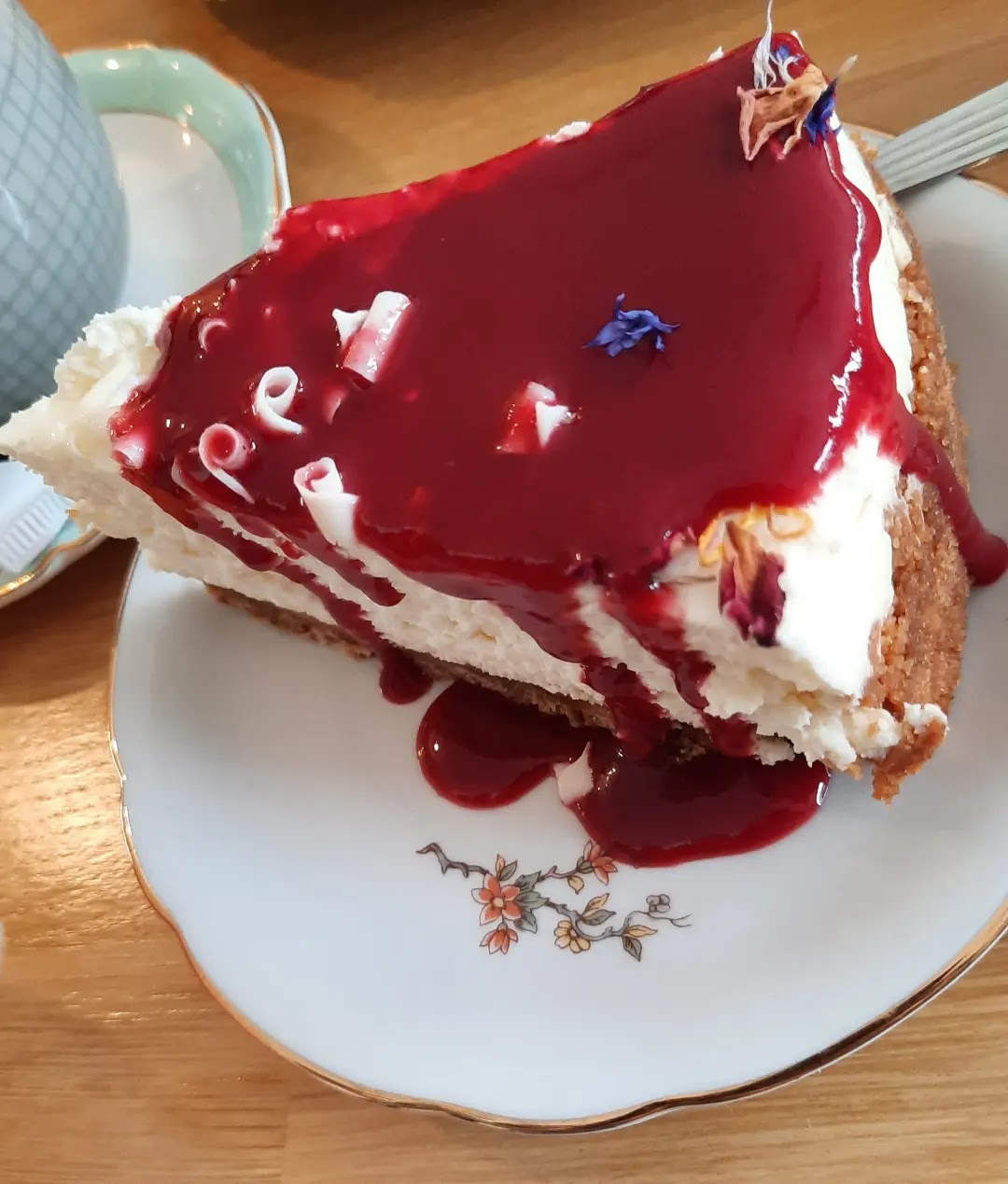 Esprit vintage et shabby chic. Accueil sympa et chaleureux. Une belle vue sur l'église Saint-Mathieu à l'étage. Les gâteaux sont si beaux avec les fleurs commestibles et très délicieux à déguster.
