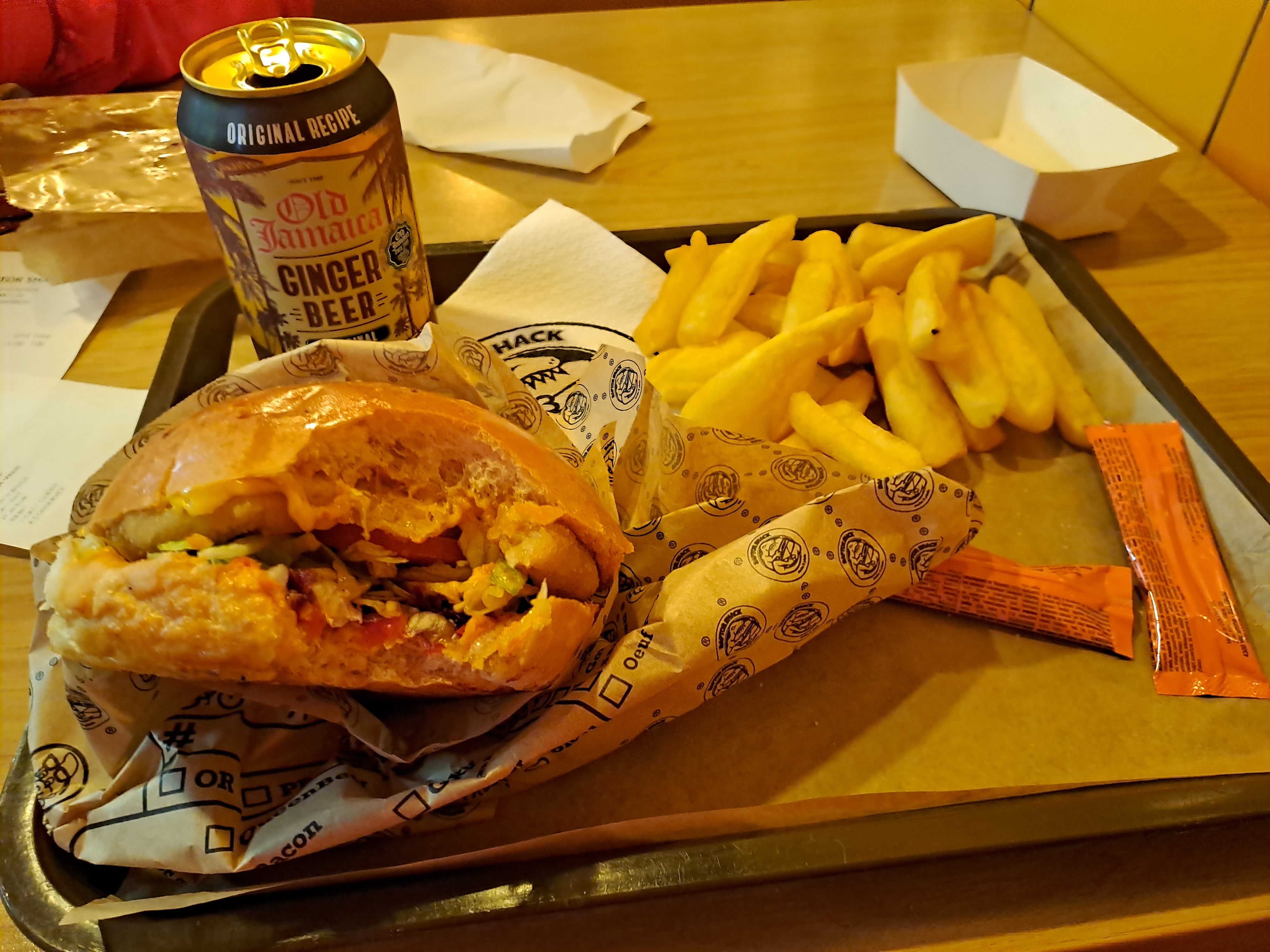 Le concepte du fait maison est parfait Les frites sont très bonnes par contre il manque un peu de goût. J'ai pris un allez op, le pain est très bon mais ça manque d'assaisonnement et un peu d'acidité.