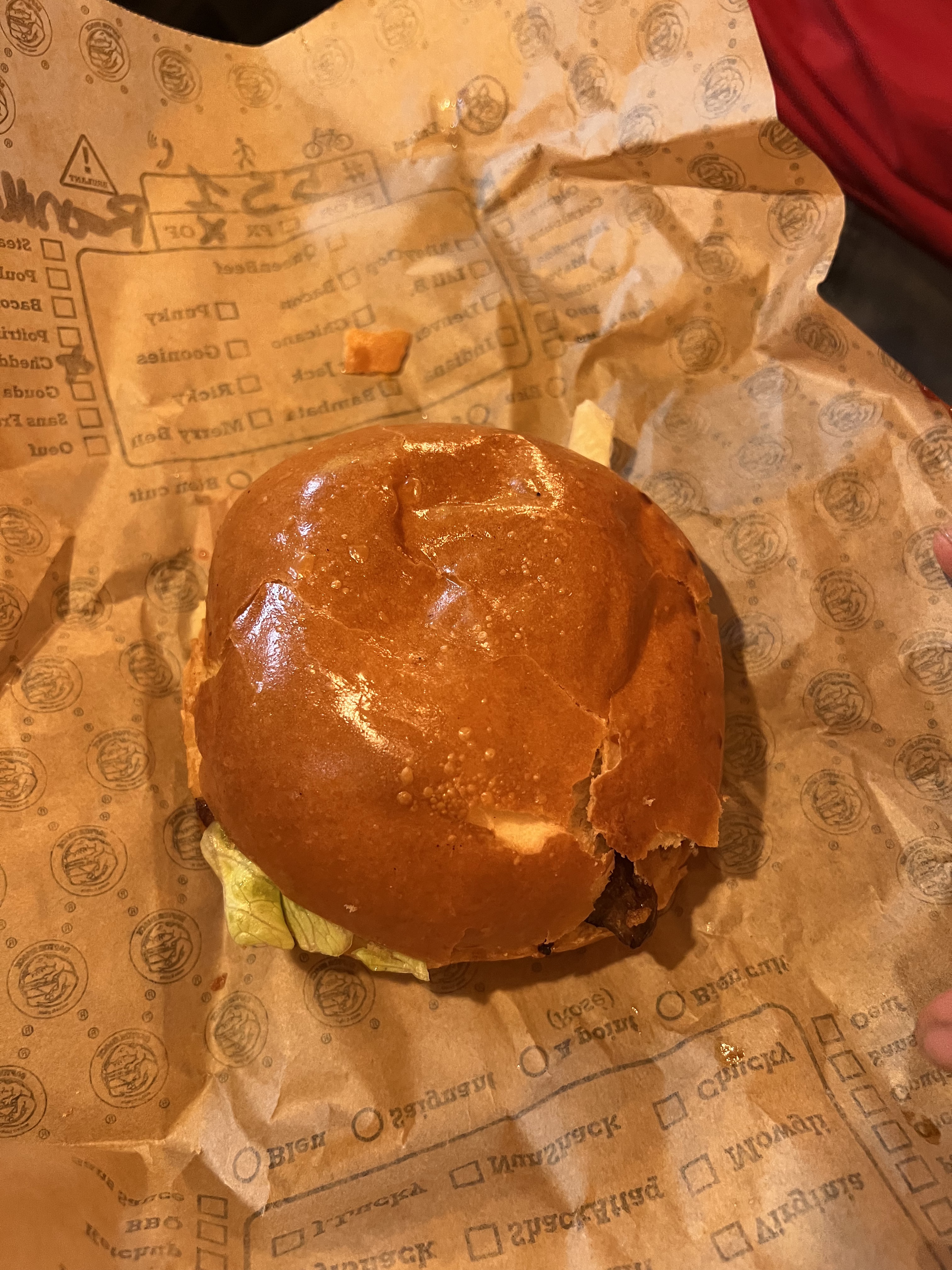 Burger pas ouf pour le prix, aucun goût. Le seul truc que j'ai aimer ce sont les frites épicées, je vous déconseille de prendre les frites avec oignons caramélisés, ce n'est pas du tout bon.