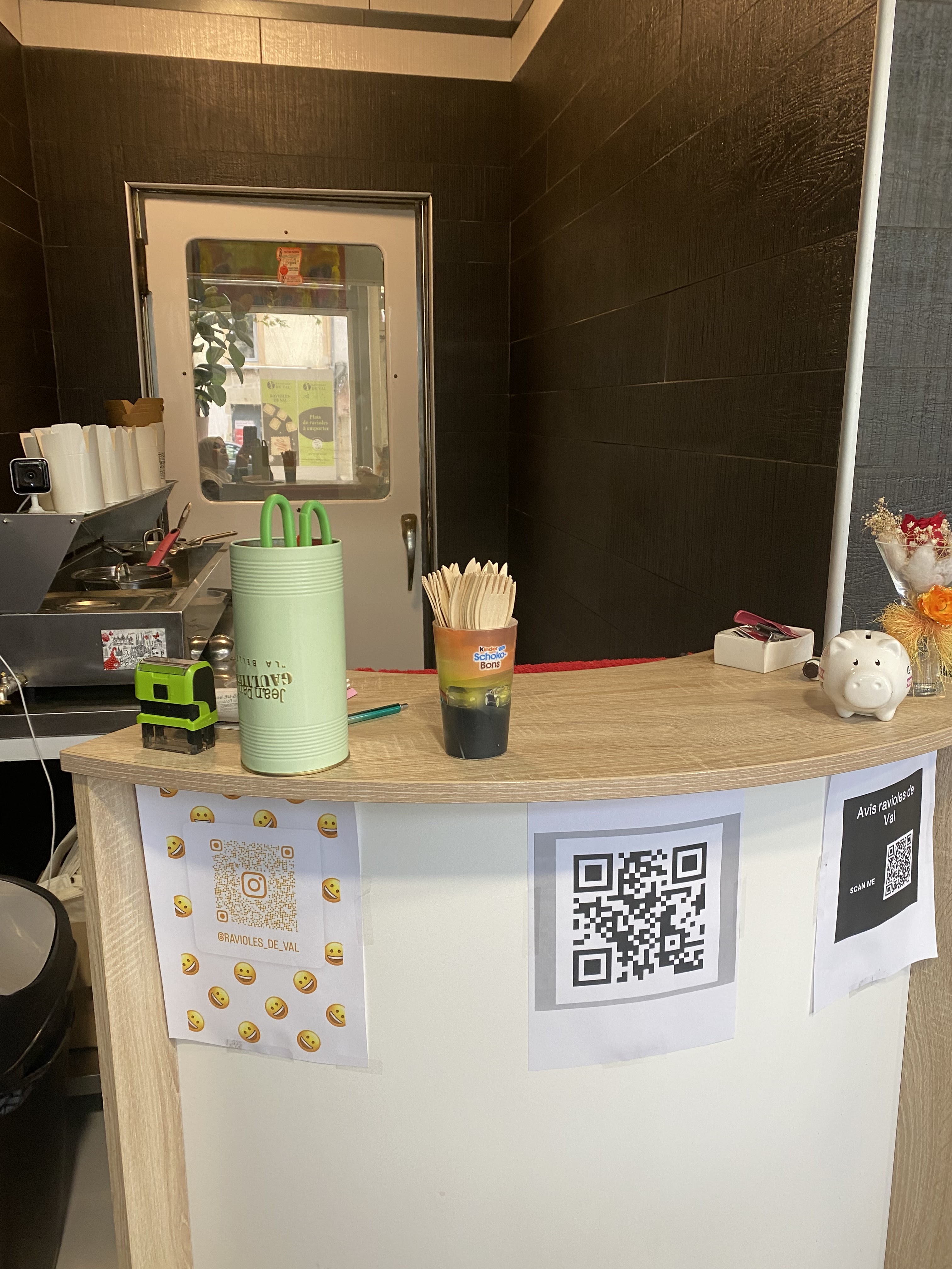 Une découverte qui bat tous les records en terme de rapport qualité/prix. Je n aime pas les ravioles car souvent c est écœurant, trop chargé en fromage et pâte trop épaisses. Nous sommes rentrés par hasard. Déjà le choix est très limité. C est raviole ou ravioles en gratin ou raviole frit ou.... ce qui est en général un très bon signe.lorsqu il y a trop de choix , Vous pouvez être certain que rien n est fait maison. Donc ici on se dit que le propriétaire aime les ravioles :) ;). Du coup j ai pris des... ravioles en me disant que je ne voulais pas faire ma rabat-joie auprès de ma famille. Et bien... oh! 😲 déjà ces ravioles ne sont pas écœurants .C est tout le contraire. Vous êtes sûre que c est fait maison et surtout c est frais. Pas trop de fromage, la pâte est cuite juste comme il faut. Les ravioles fondent dans la bouche hmmm je crois que cela m'a réconcilie avec les ravioles. Le goût est très fin. le plat sans sauce 5 euros!!!!! Vous avez vu ça ou? Et en plus l accueil est chaleureux et on est aux petits soins pour vous. Alors oui. Les assiettes sont en plastiques durs, mais n oublions pas que normalement se sont des plats à emporter. La partie table c est vraiment pour faire plaisir aux clients. J ai pris un thé à la menthe. Et j ai eu des vrais feuilles de menthe, pas les sachets achetés en super marché. Et les sauces qui accompagnent ces ravioles sont très bonnes. Bref. Simple. Delicat, fait avec amour et le service au top et .. et surtout pour le prix vous pouvez en abuser je ne sais pas comment la propriétaire arrive à faire un bénéfice. Pour une fois qu on ne nous arnaque pas. ALLEZ Y. Il faut faire vivre les gens qui nous font t à manger avec le cœur et qui régalent nos papilles... je n en revient pas d avoir écrit cela à propos de ravioles.. 👀