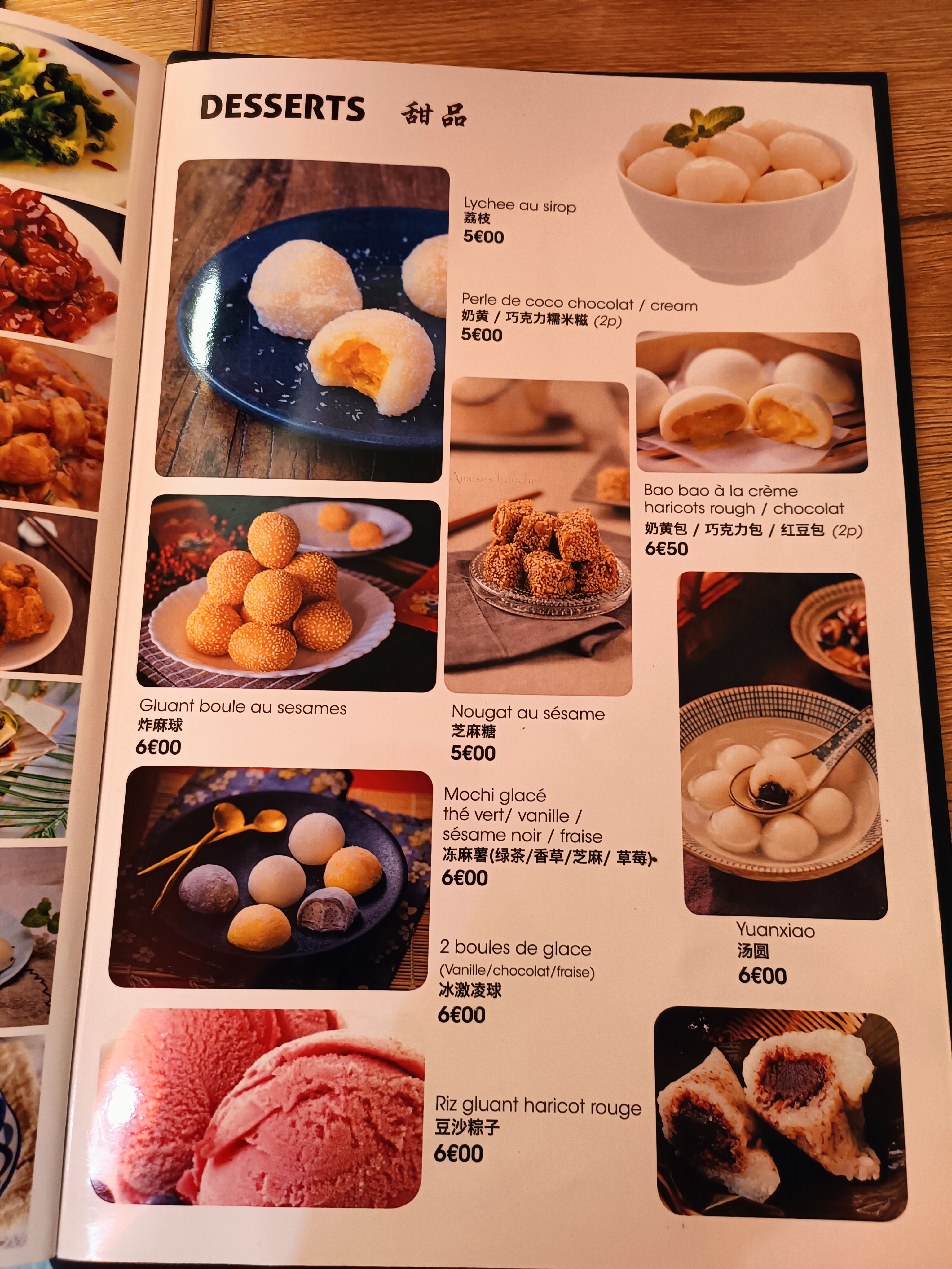 Petit restaurant chinois familliale vraiment agreable. Propre serveur sympatique et disponible. La cuisine est ouverte, il y'a de delicates odeurs qui sémane dans toute la sale. Avec ma femme nous avons commandé des raviolis aux crevettes, une soupe de raviolis aux poulets, c'etait delicieux, la cuisson maitrisé et les saveurs subtiles et raffinés. Les desserts, les bao bao à la créme et les mochis étaient du même niveaux. Vraiment un delice, je vous conseil fortement de vous y arreté si vous faites un tour fans le cartier.