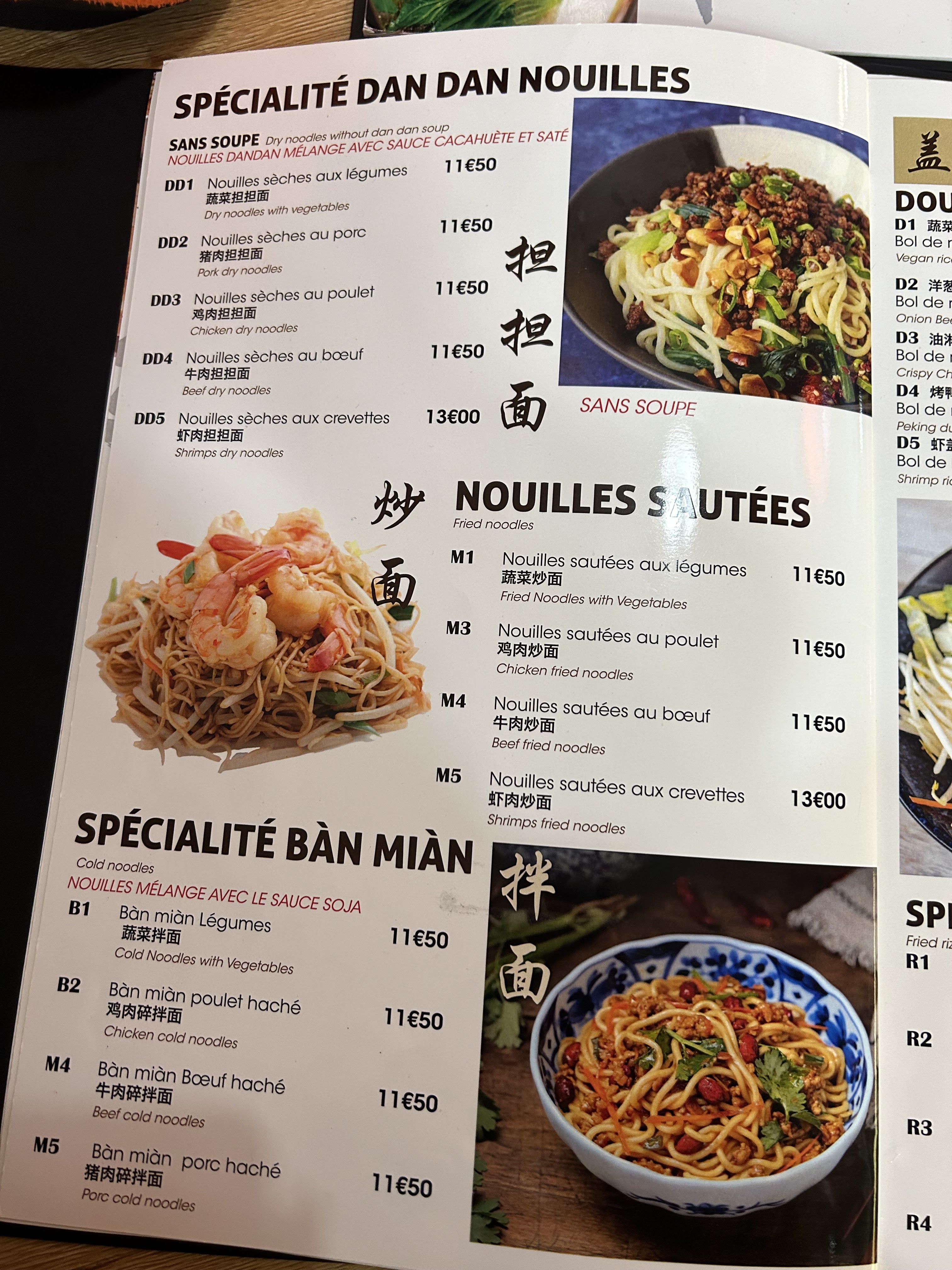 Un menu varié aux prix abordables et les plats sont délicieux. Gros coup de cœur pour les raviolis grillés et les baozi. Et en plus les gérants sont gentils !