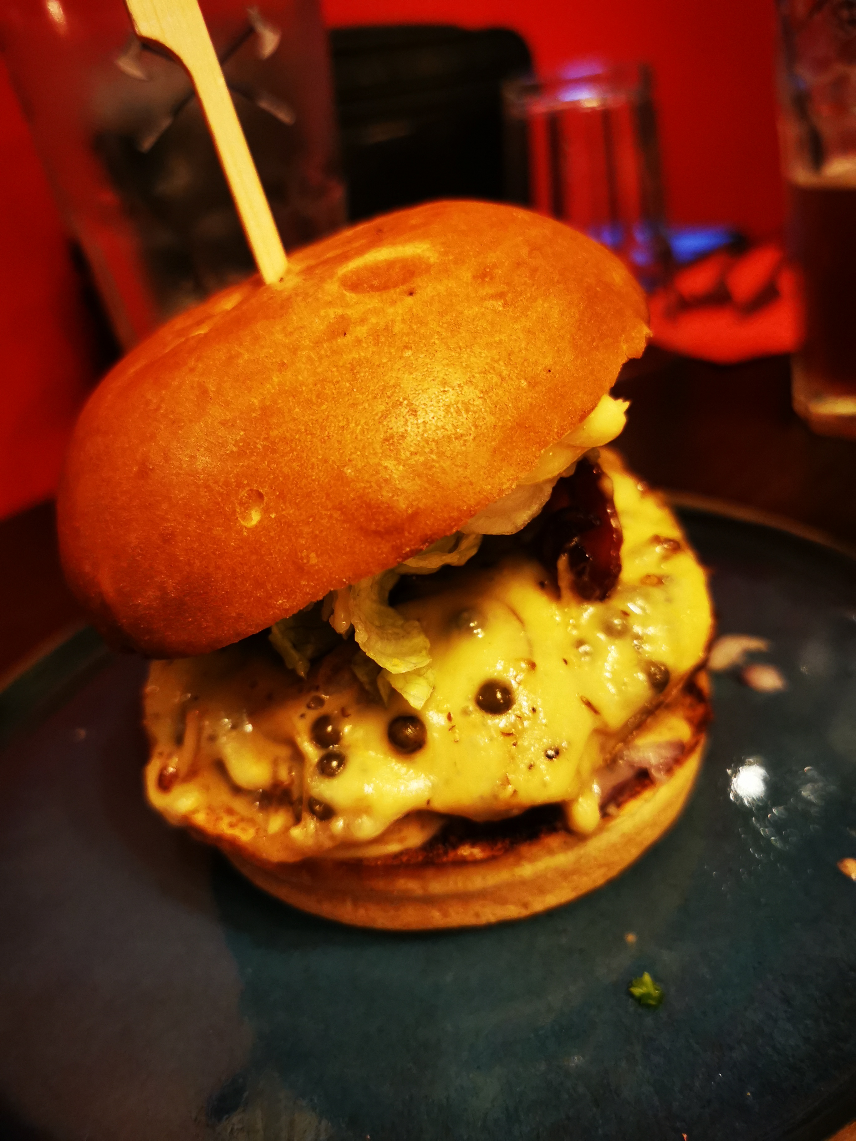 Commençons par le début, le cadre est exceptionnel. On retrouve cette ambiance bistrot chaleureuse mélangée à des notes de pop culture, ce qui est très appréciable. C'est ainsi que l'on peut apercevoir Luffy, notre futur roi des pirates, dévorant un bon burger sur l'un des murs de l'établissement, détail que je ne pouvais omettre. En parlant de pirates, j'ai commencé avec un rhum exceptionnel que l'on ne trouve qu'à cette adresse à Compiègne. Les bières, les cocktails et la limonade sont également excellents, je recommande particulièrement l'entrée avec les nachos boeuf cheddar. Mais la véritable force réside en premier lieu dans les burgers. Le chef honore son titre et nous sort des petits bijoux. Le slice est incroyable et la présentation est originale, je le recommande vivement. Les frites sont fraîches, la sauce maison, que demander de plus ? En second lieu et ce qui est le plus appréciable, c'est le service. Nous sommes bien accueillis et mis à l'aise immédiatement. Les plats et les boissons sont bien présentés et mis en valeur par la description du serveur, qui est plus que sympathique. Nous avons passé un moment agréable et recommandons fortement cet endroit. Cela vaut vraiment le détour et nous reviendrons sans aucun doute. Allan et Pollux on the flux ✌️😉
