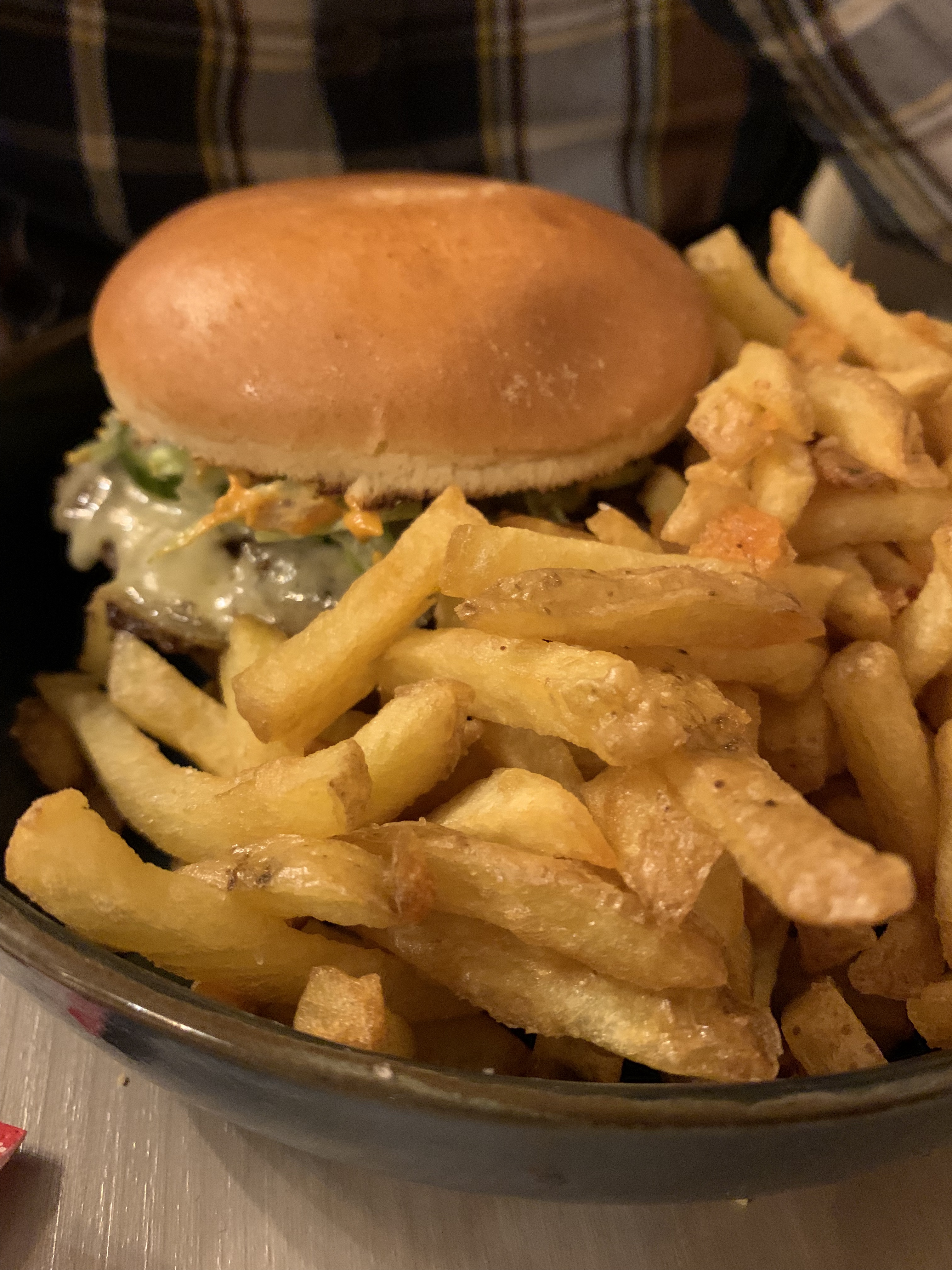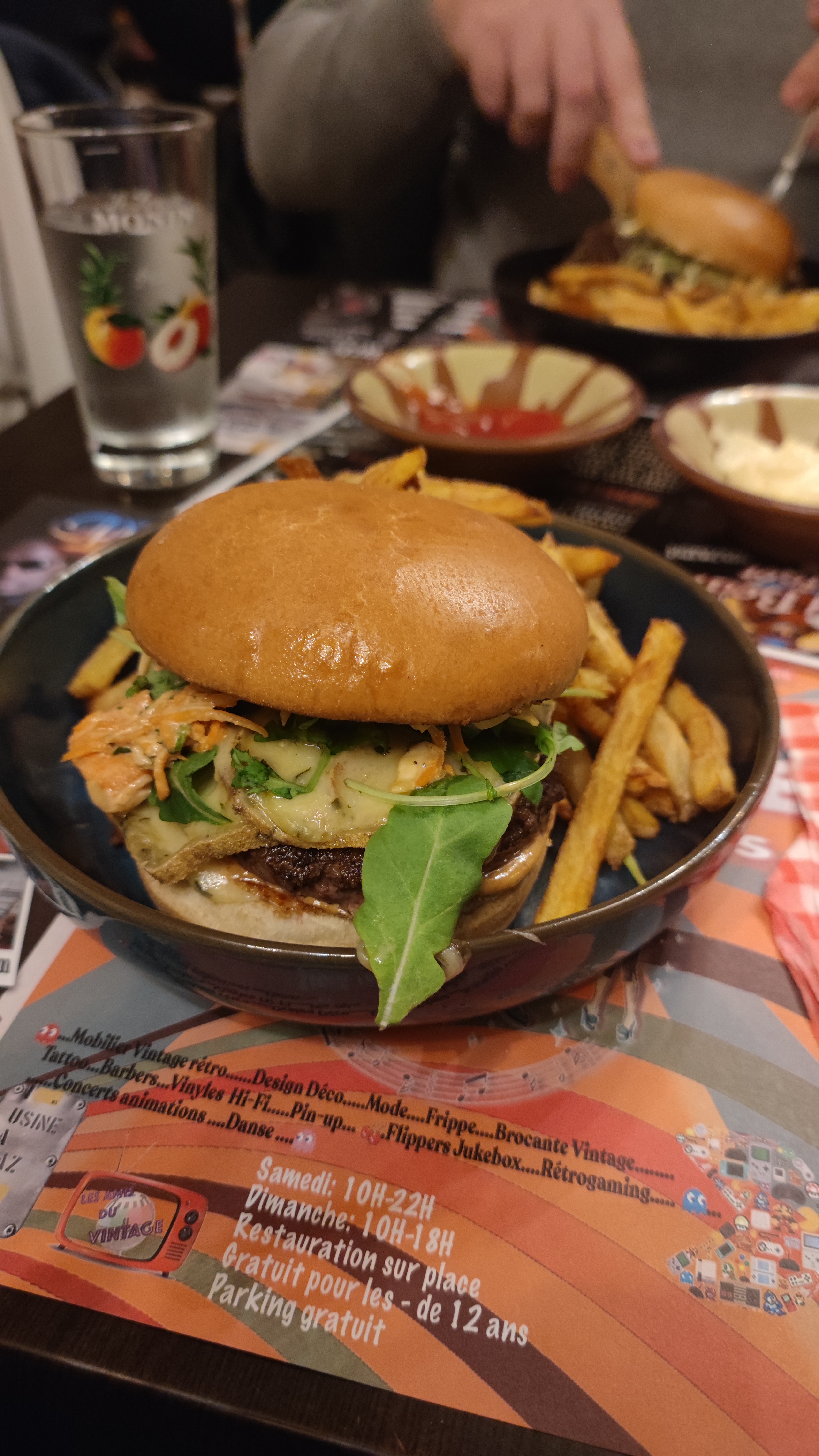 Belle découverte ! Petit resto intimiste mais au service chaleureux et sympathique. Hamburger fait maison avec ses frites comme chez mamie ! Plat savoureux, réconfortant. A déguster entre amis, en famille ou en amoureux mais pensez à réserver.
