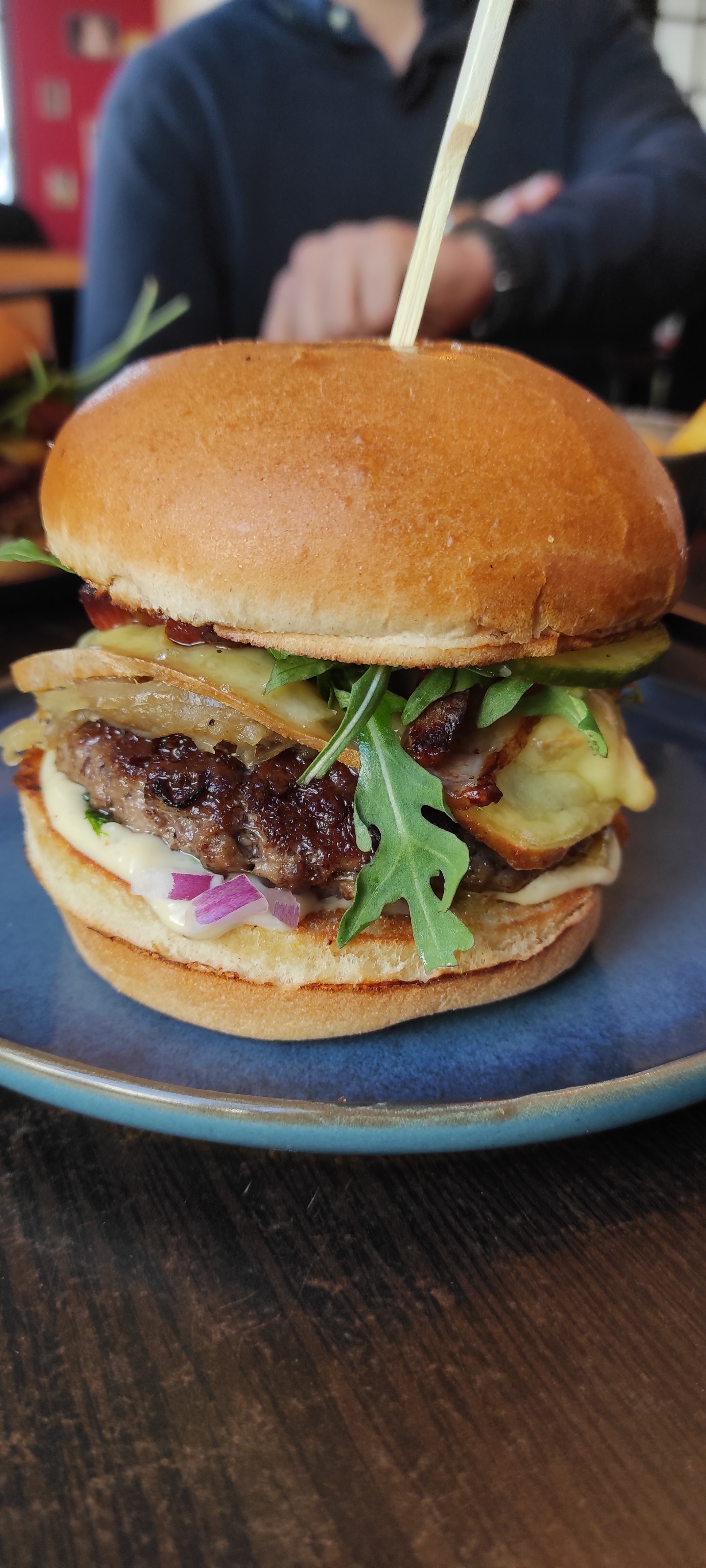 Très bon burger ! Pensez à réserver surtout. Nous avons eu de la chance, à deux, de passage à Compiègne, nous cherchions où dîner et avons fait cette trouvaille, nous avons été acceptés sans réservation en début de service, merci encore. Très bonne adresse, je recommande. Prévoir 18€~ le burger frites en soirée, sinon menu midi 19,50€ avec boisson et café inclus si mes souvenirs sont bons. Tout fait maison, belle décoration, bon choix de boissons alcoolisées et très bon service :)