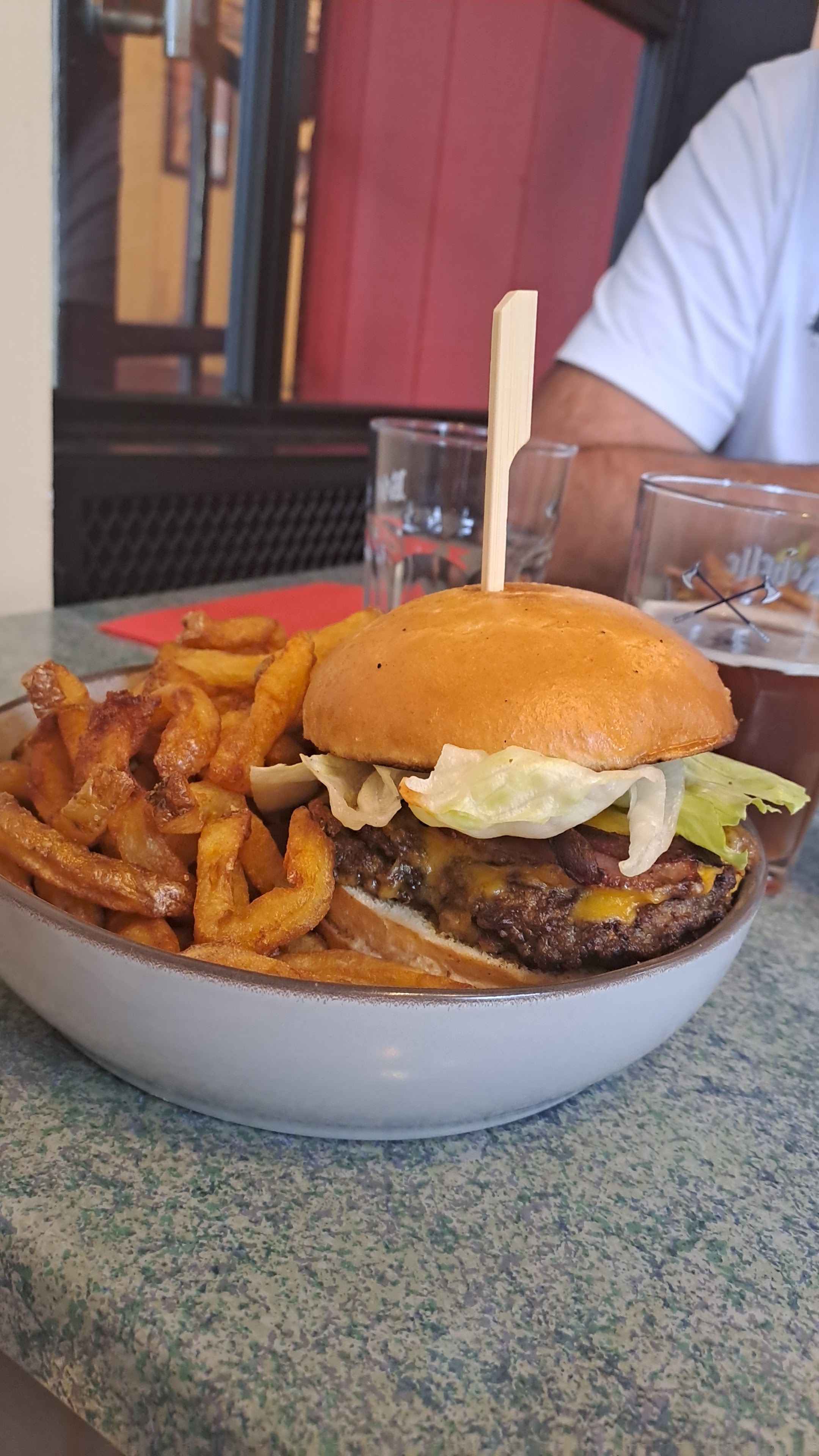 Un super moment ! Serveur hyper accueillant et serviable. Merci à l'établissement de prôner le local ! Et le niveau des burgers ? Excellent! Les frites, de même ! Ça ne dégouline pas de gras, ce n'est que du bon ! Je vous souhaite de perdurer ! A bientôt.