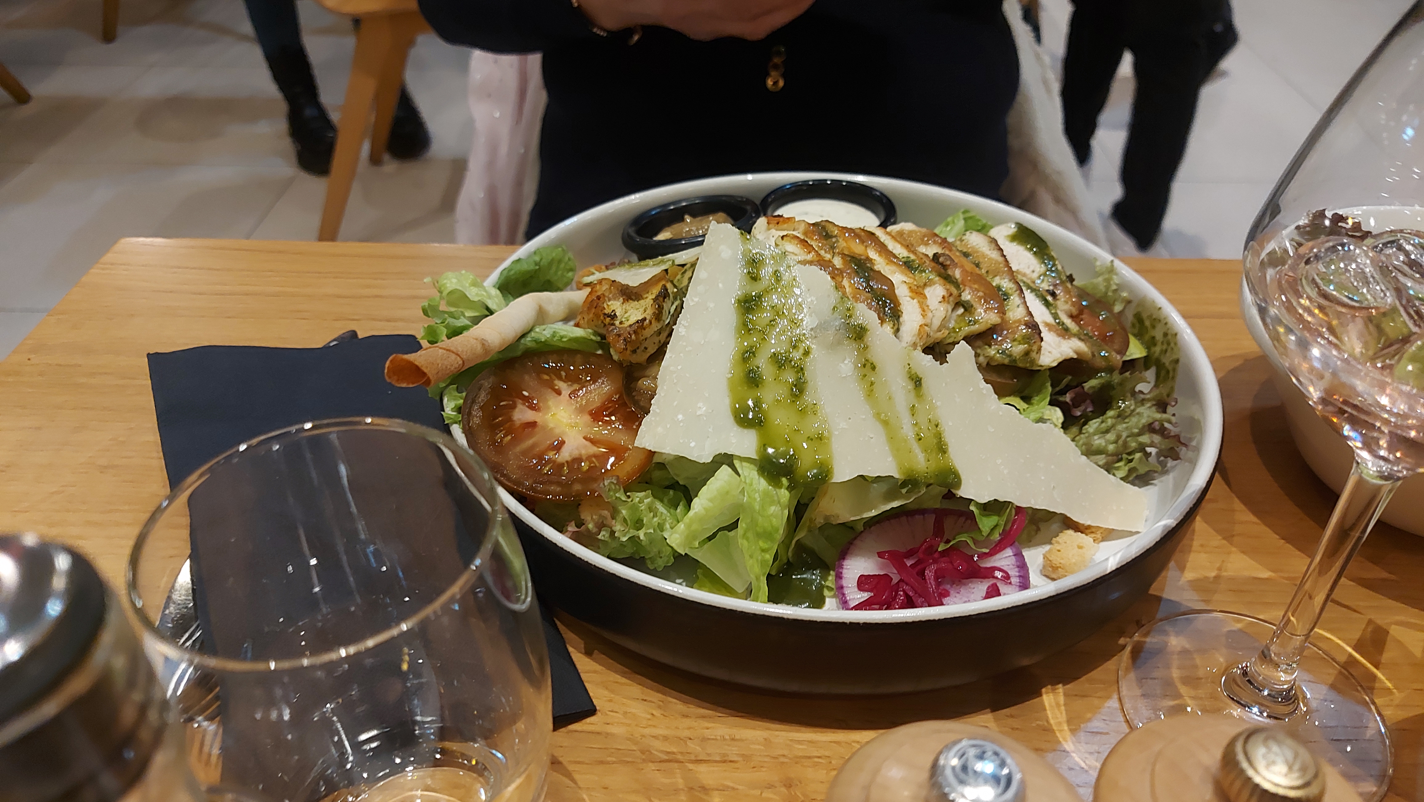 Ils ont une superbe salade césar avec du poulet grille que d'un côté pour le croustillant et copieuse après restaurant un peu chère quand même.