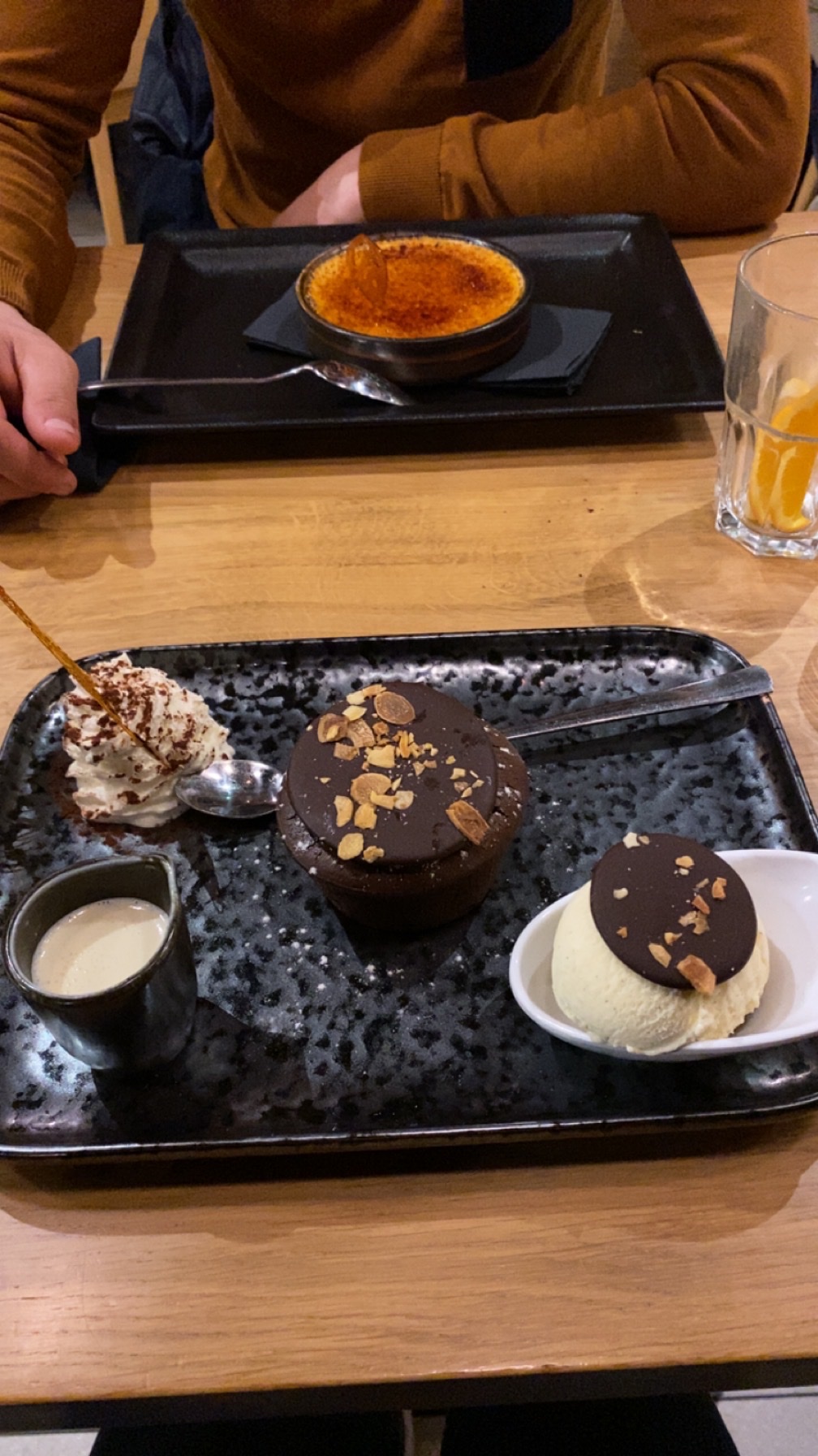 Pas le temps de finir l'apéritif que le plat arrive déjà, bien mangé, bonne cuisine mais très bruyant, grande salle beaucoup de monde et musique en plus. L'addition un peu salée 2 apéritifs 2 plats 2 desserts 1/2 bouteille d'eau gazeuse 93€.