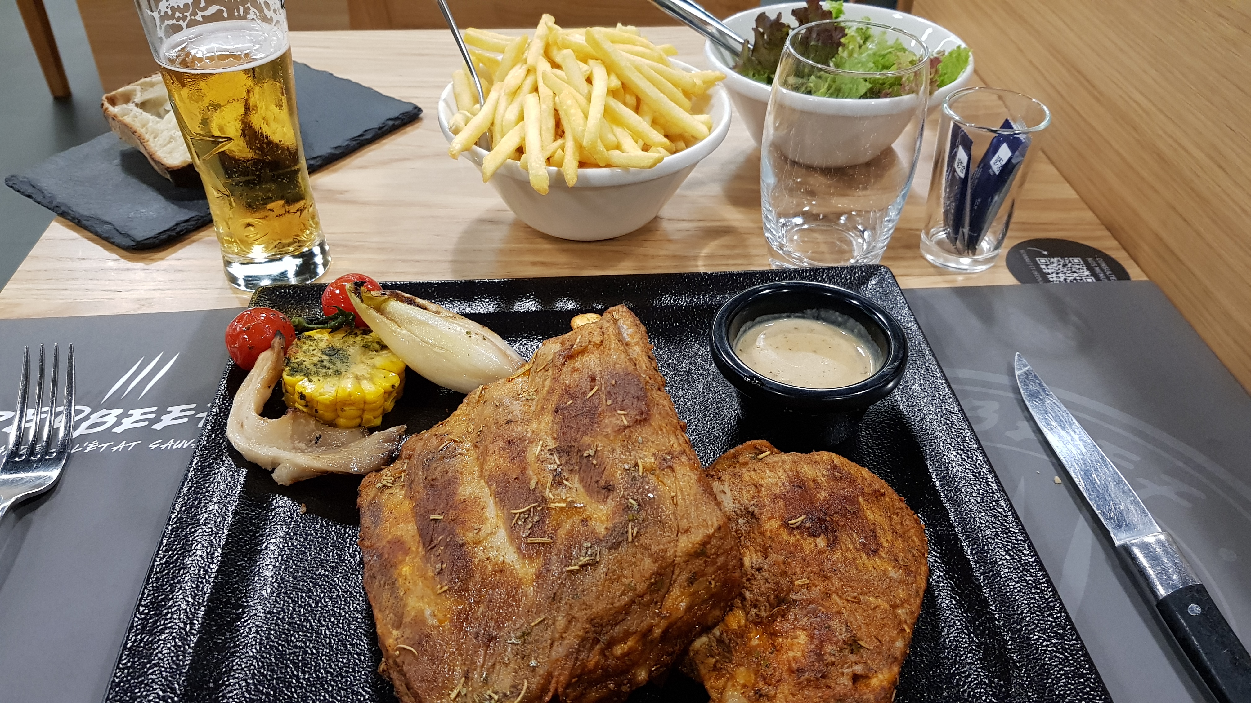 Très bon restaurant de viande, les salades sont gargantuesques et délicieuses aussi. De la bonne cuisine de brasserie, simple mais goûteuse et le service est impeccable. Un indice de la qualité du lieu, il était plein un mardi soir en pleine vacances scolaires.