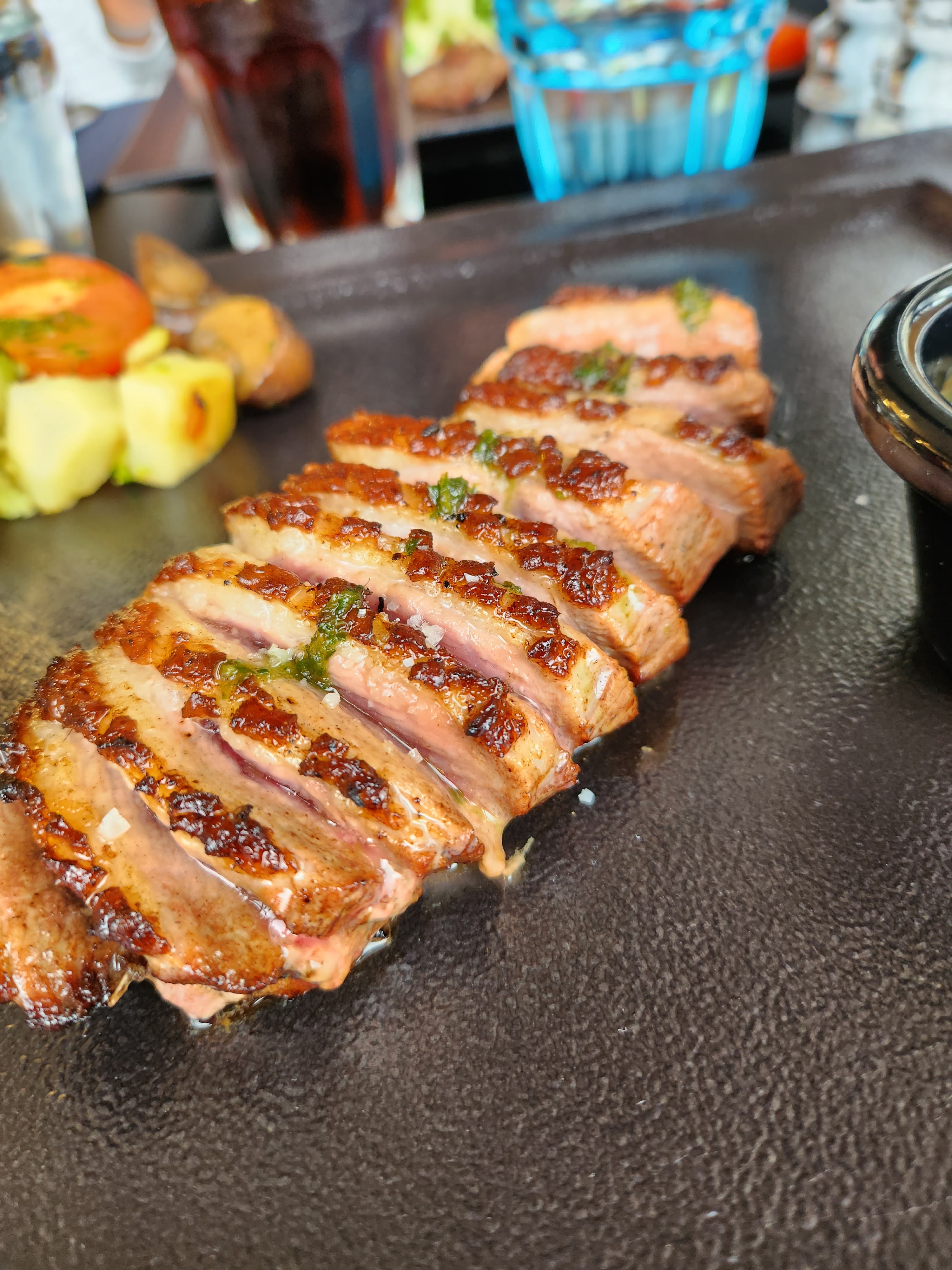 Un très bon service. La viande est cuite comme demandée et bien tendre.
