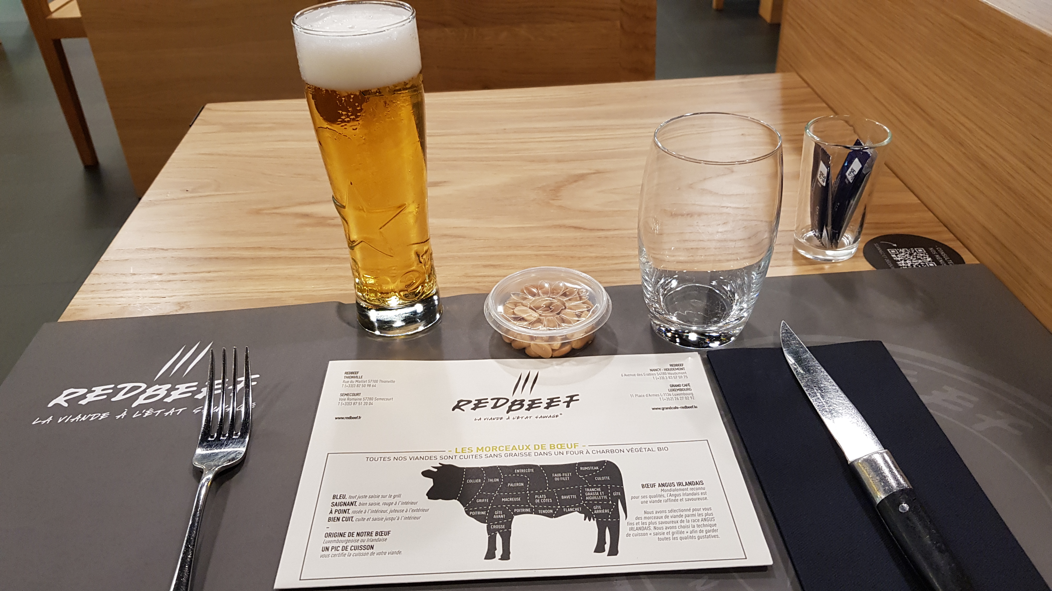 Réservation d’une table par téléphone pour le soir même, arrivé sur place nous demandons à être placé dehors, ce à quoi le serveur (sûrement responsable) nous répond qu’il faut le préciser par téléphone. En 2022 chez red beef c’est au client de faire le travail des employés, bientôt les clients débarrasseront eux même leur table. Si ce n’était que ça, un couple devant nous arrive sans réserver et se voit accorder une table en terrasse. Lorsque que nous le faisons remarquer au serveur celui-ci nous répond que le couple a réserver, ce qui est faux puisque quelques minutes auparavant il a lui même vérifier que les tables en terrasse en question était libre pour le leur donner. Pour le repas sans commentaire, on paye un prix mais sûrement pas la qualité. Ne recommande pas.