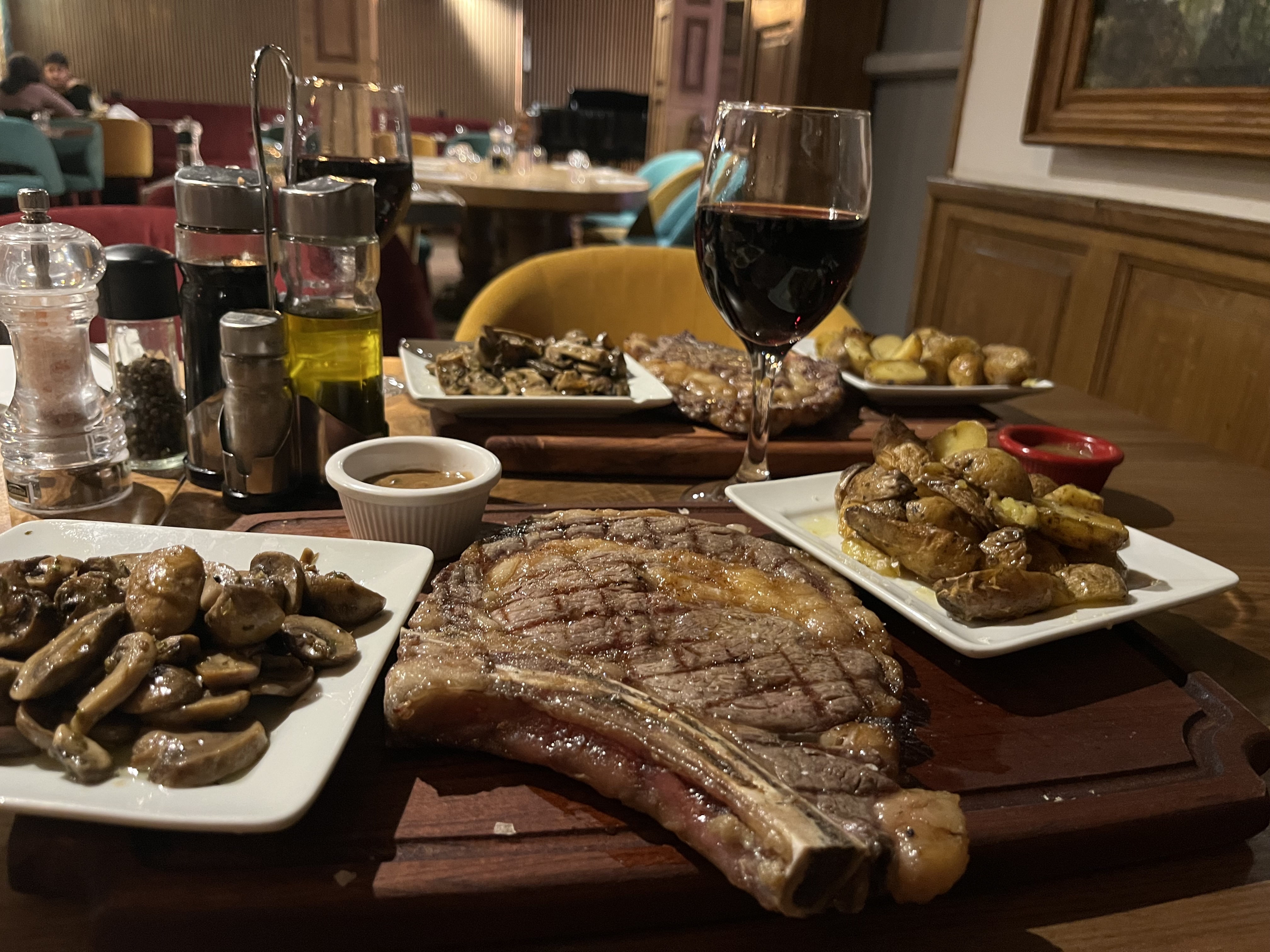 Beaucoup trop cher pour la qualité obtenue. Nous avons eu un steak Tomahawk, d'accord, et le vin n'est pas bon pour ce que vous payez (pas même à la bonne température). Juste un joli spectacle.