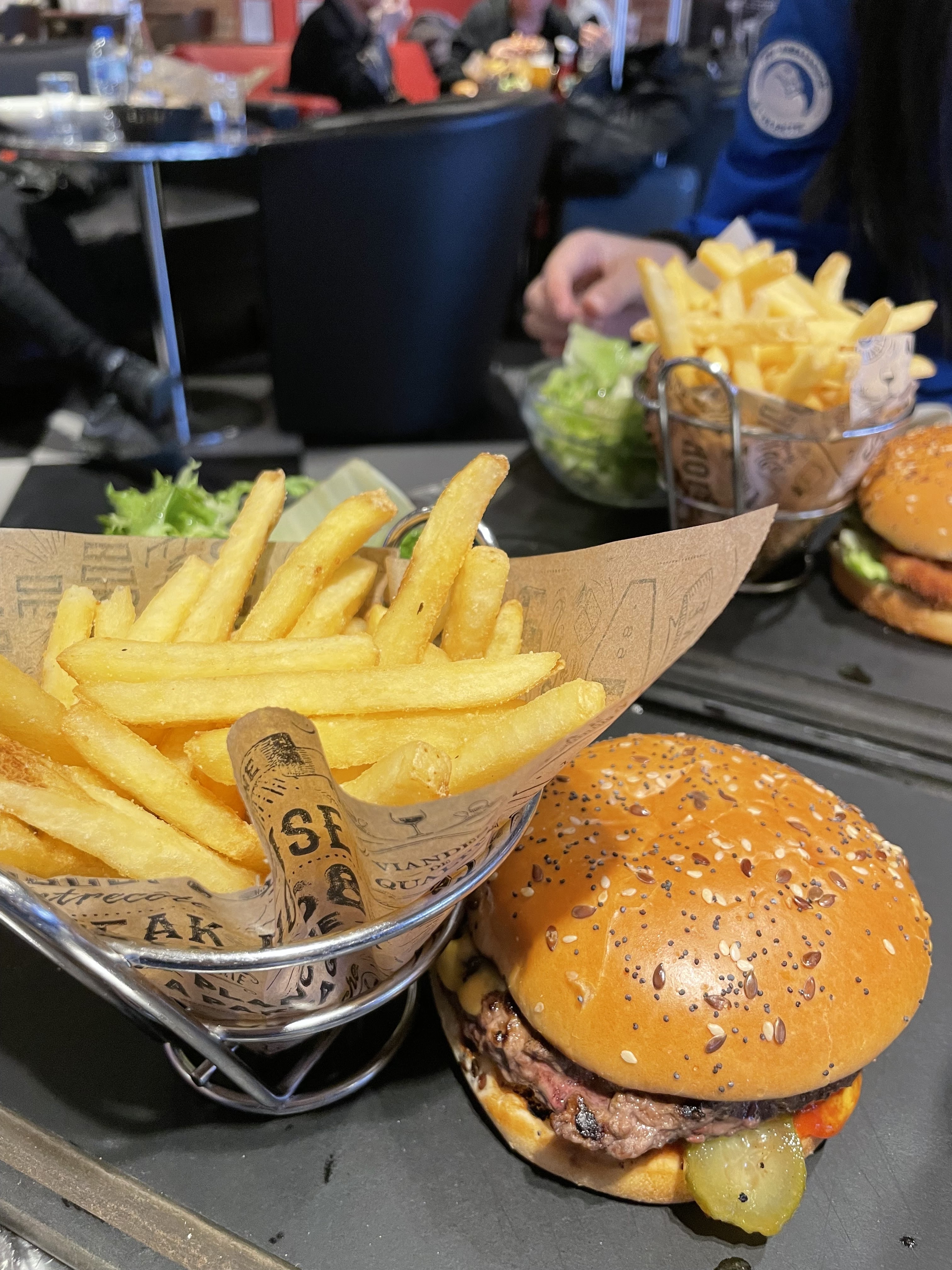 Le retour d'un amie de son erasmus qu'on est aller chercher a l'aéroport port. Nous avons etais vraiment ravie de notre expérience la bas surtout de l'expérience culinaire. Le petit frère de hippotamus n'a rien a envié a son rend frère. Meme si le choix était plus restreint que dans la filiale d'origine. Les plats était bien préparé, avec beaucoup de gout, toutes les cuissons était respecté. Le fromage du burger était aussi incroyable et les frites bien croustillante. Apres le staff était un peu speed mais sûrement du au lieux comme nous étions dans un aéroport
