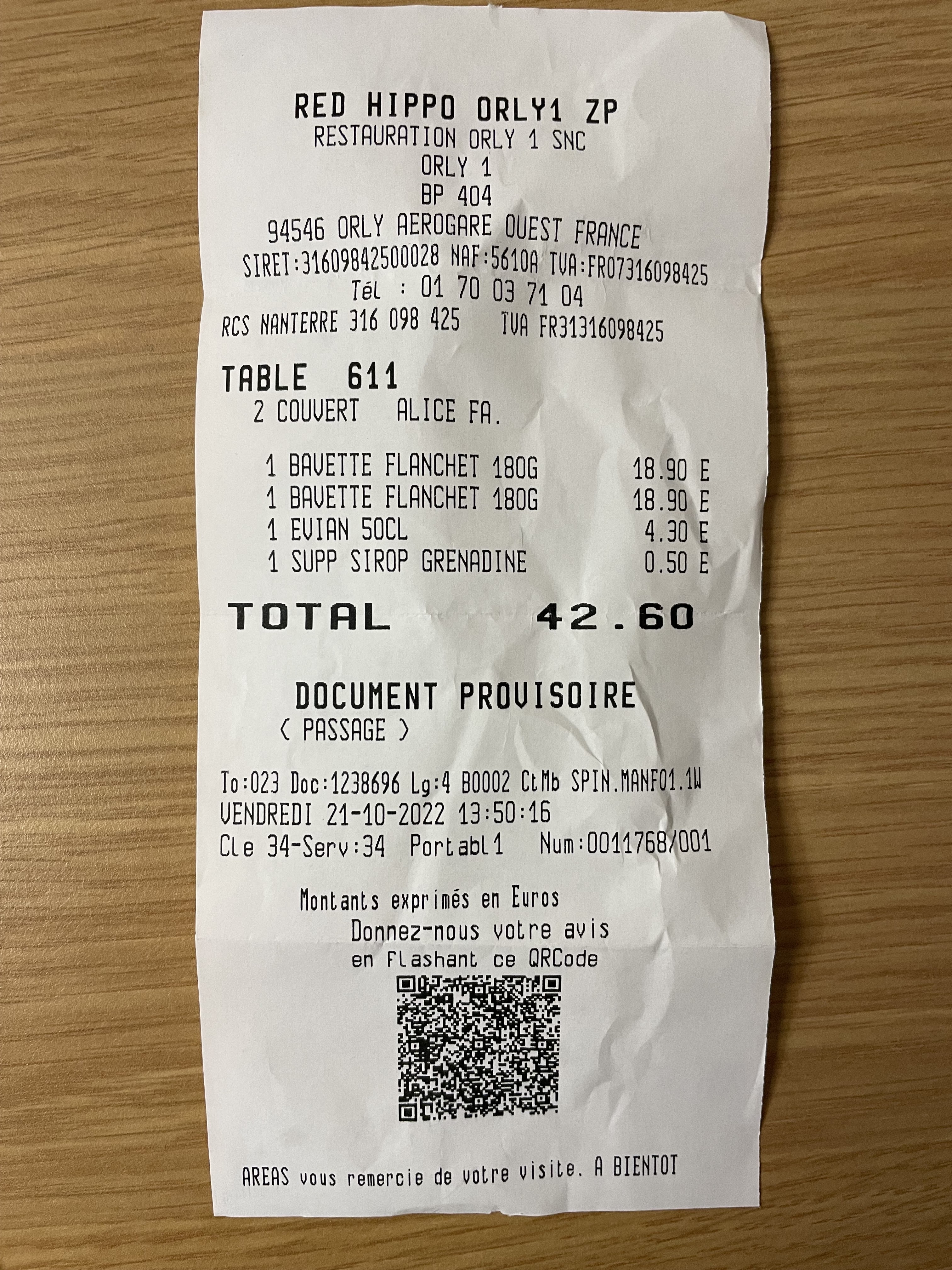 Bonjour Dommage que ce restaurant est fermer temporairement, car nous avons repris nos vol sur orly 1 en voyage d affaire , ns savons plus ou manger le soir a l aeroport, vivement la reouverture de cet brasserie red hippo