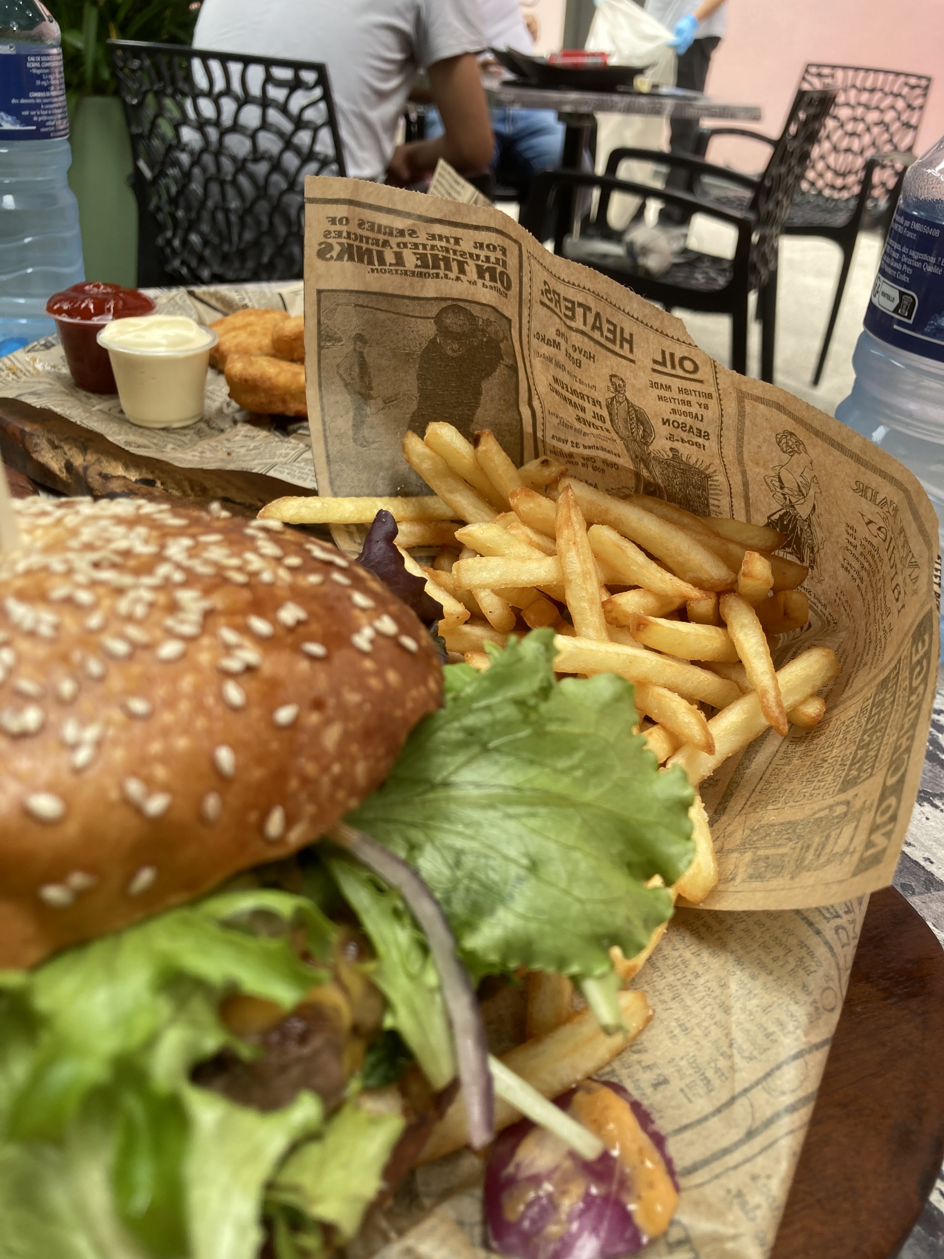 superbe burger avec de bonne frites et les sauces Mayo ketchup sont a volonté