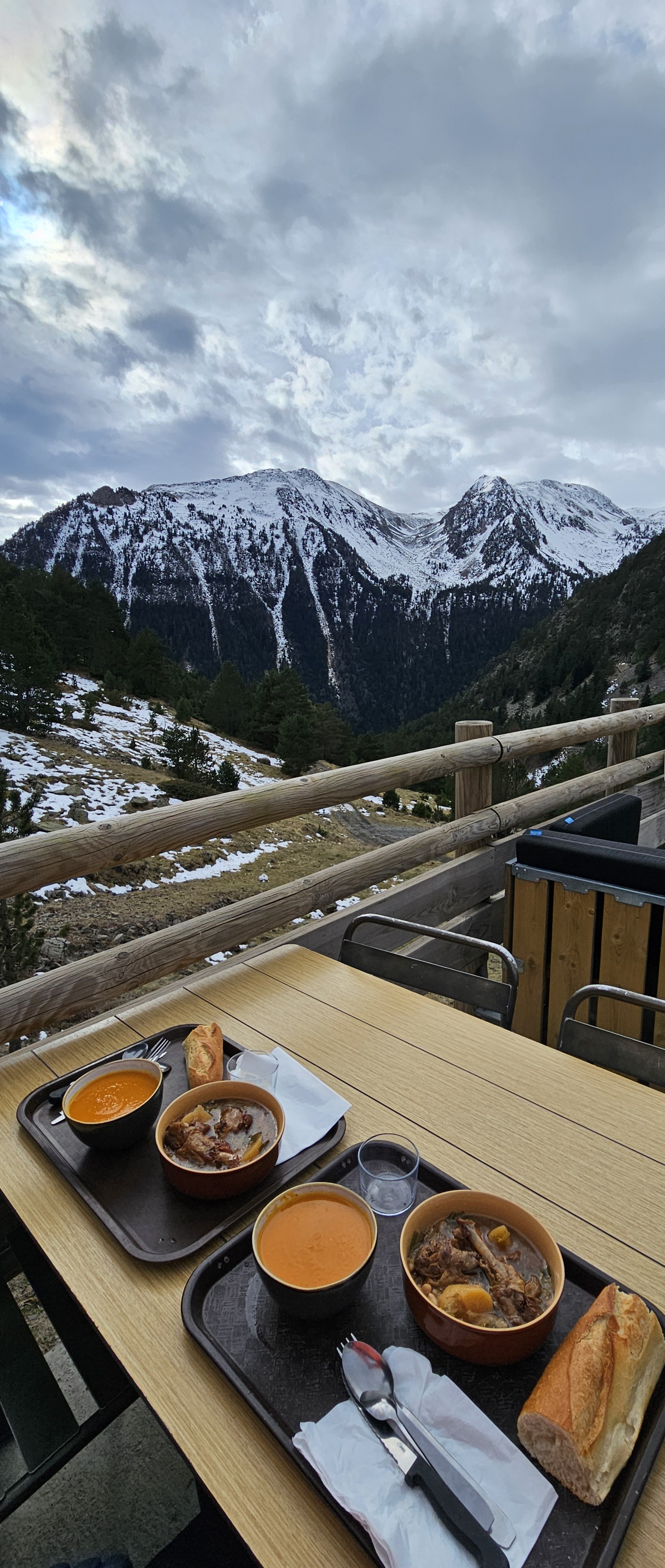 Waouh, ça c'est une terrasse avec une vue imprenable ! Et en plus il y a du choix à table, rare pour un resto d'altitude. Astuce économique : prenez le forfait remontée qui inclut le menu. Son coût sera ainsi divisé par deux !