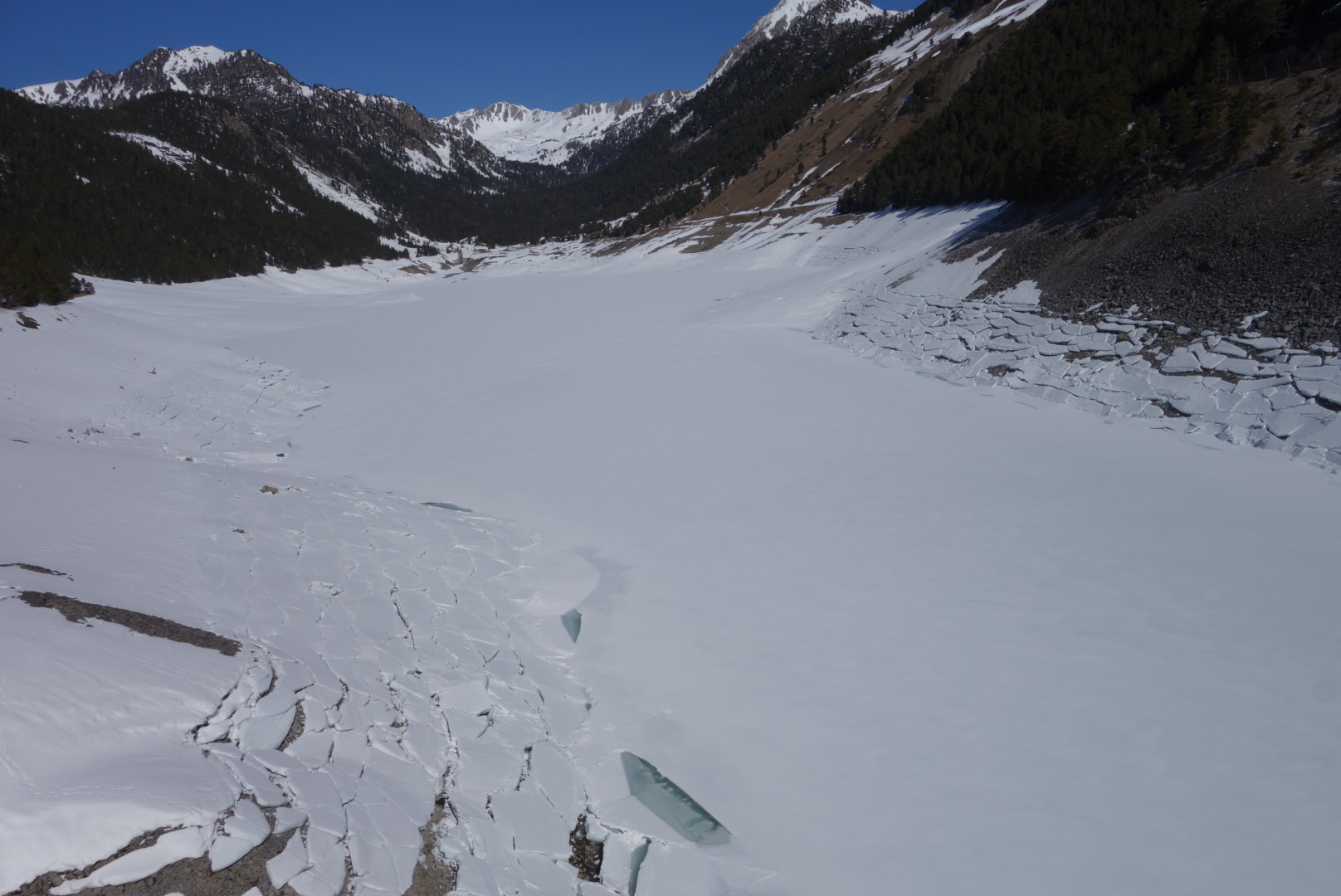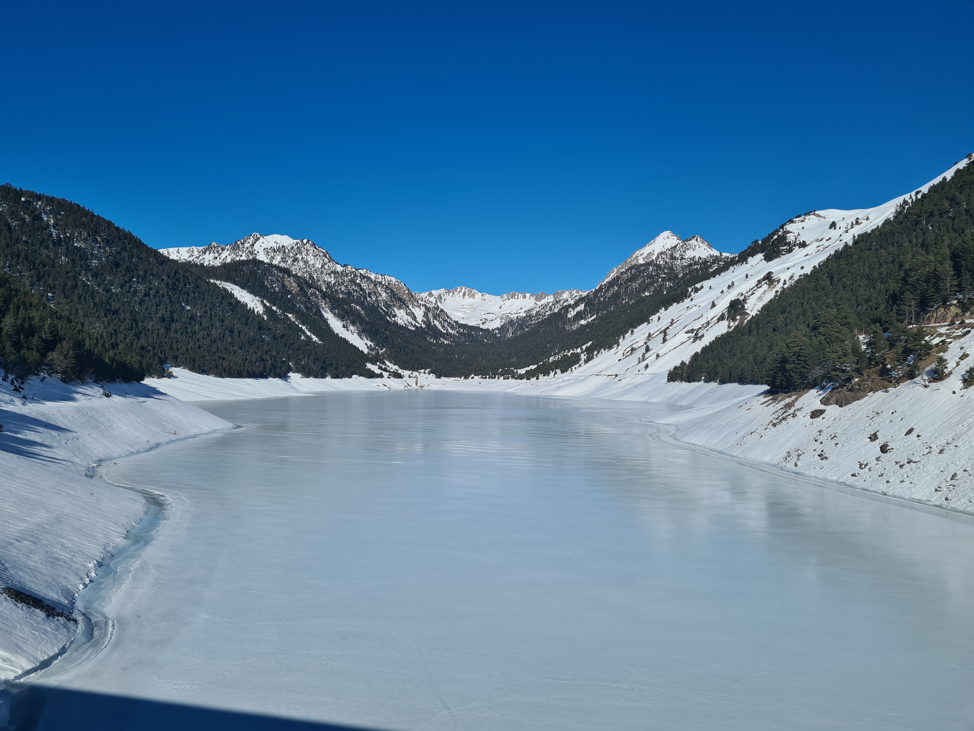 Randonnée en hiver ,tour du lac enneigé, magnifique.