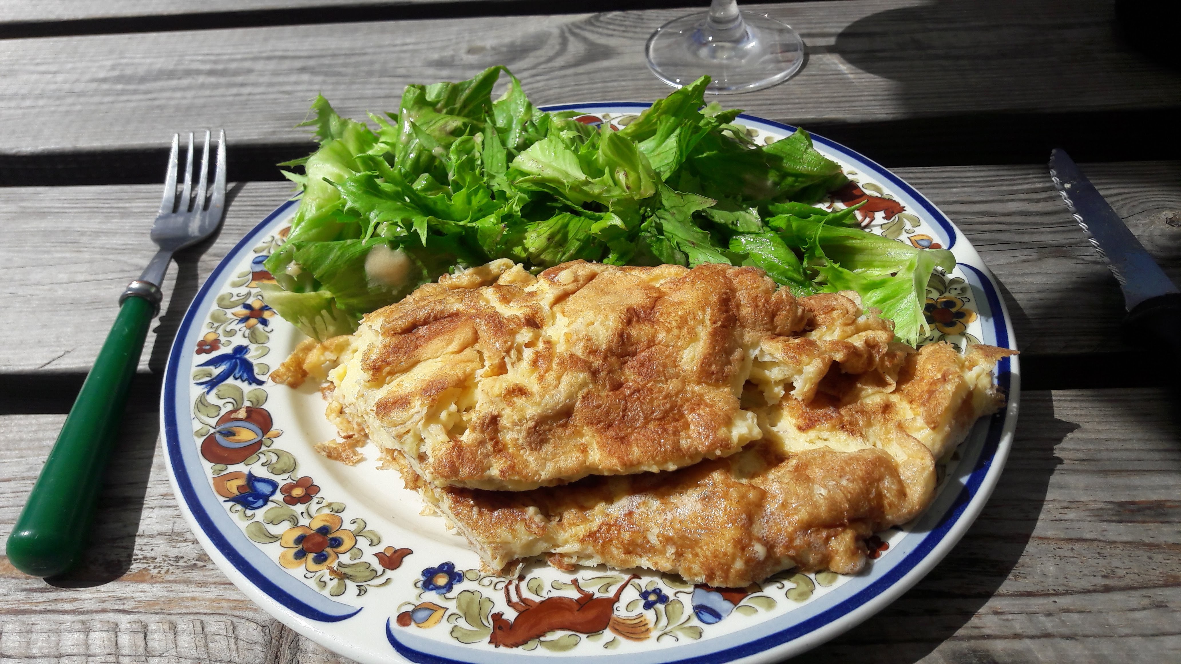 Nous avons passé une belle après-midi après un parcours difficile. Une super omelette et une bière s'accordent parfaitement avec le lac. Cela en vaut vraiment la peine. La meilleure omelette de ma vie.