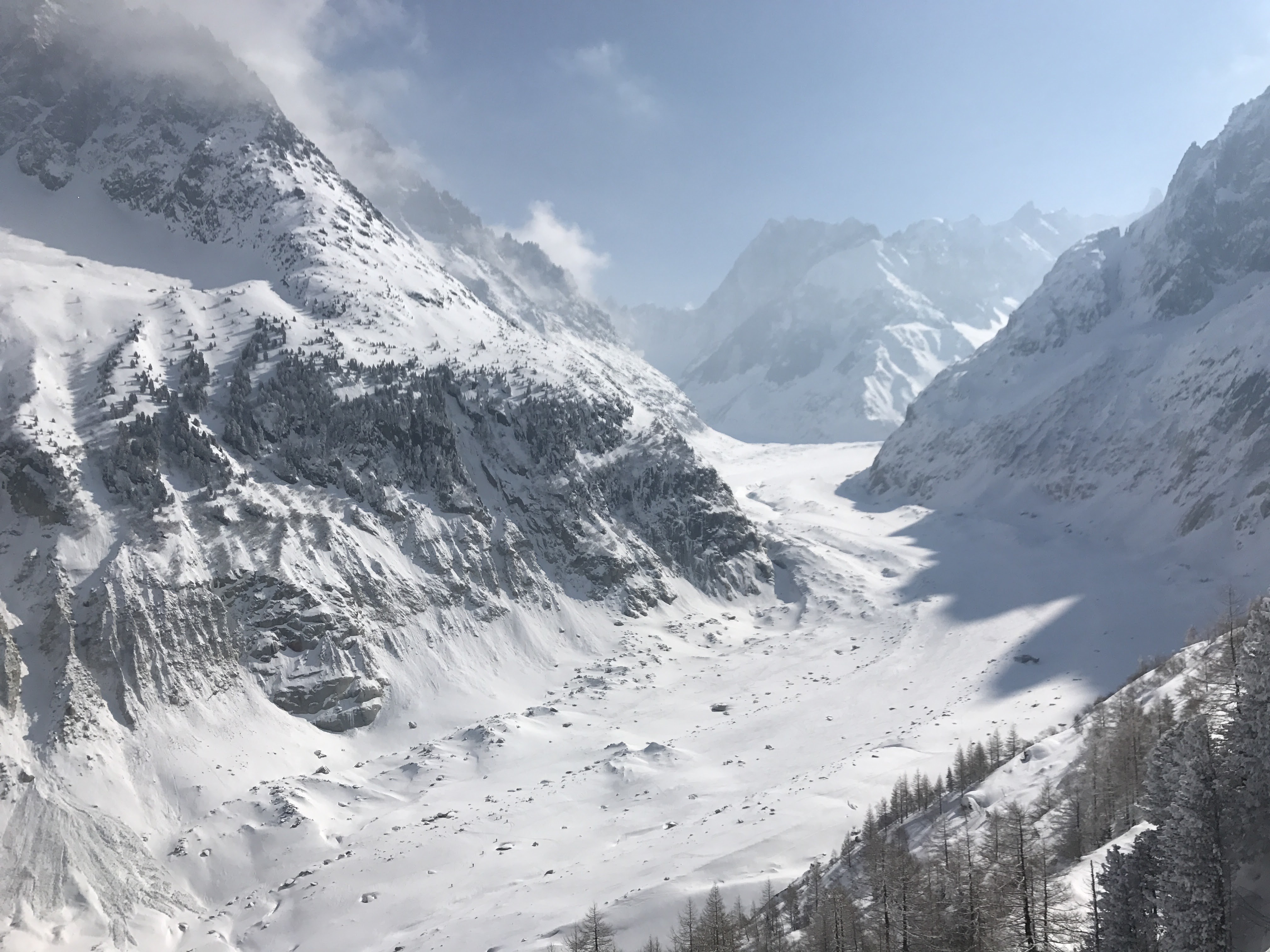 Lieu exceptionnel, calme et tranquillité après le départ du dernier train qui redescend à Chamonix