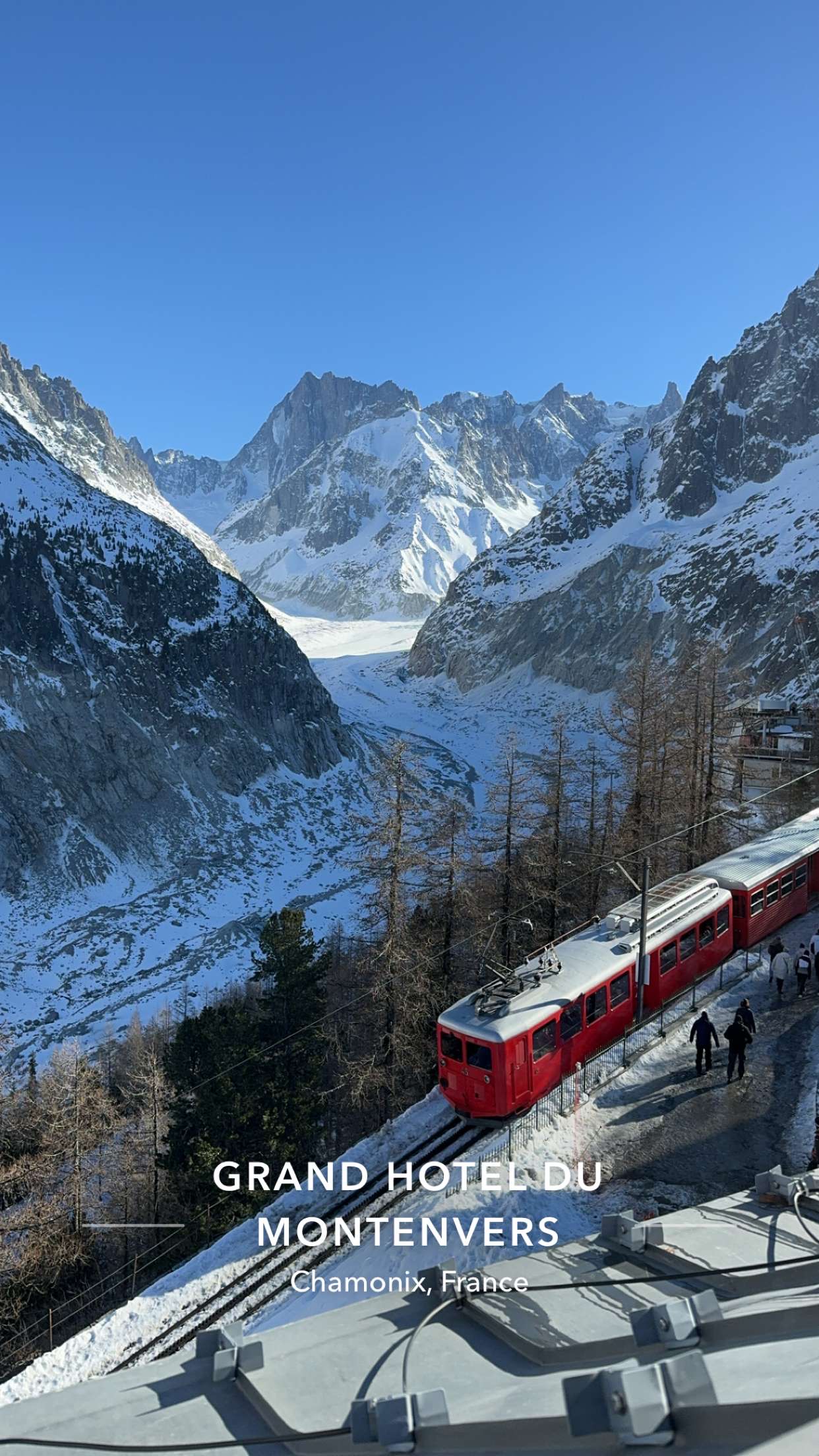 L'expérience commence dès la gare de Montenvers... ce petit train rouge à crémaillère qui nous emmène dans la montagne avec des vues spectaculaires. L'hôtel est à quelques pas de la gare d'arrivée. Et là, le temps s'est arrêté... une équipe charmante, au petit soin, souriante... une grande cheminée qui crépite... des tiroirs remplis de jeux... des étagères croulant sous les livres... le journal local à disposition... des terrasses exposées comme il faut... je ne sais pas s'il vaut mieux être coincée pour profiter de l'hôtel ou sortir découvrir le paysage époustouflant à 360° et ses balades en forêt. J'allais oublier de vous parler de la cuisine excellente allant du petit déjeuner au diner ! C'est plus qu'un refuge c'est un nid où l'on se fait chouchouter... merci merci merci à toute l'équipe