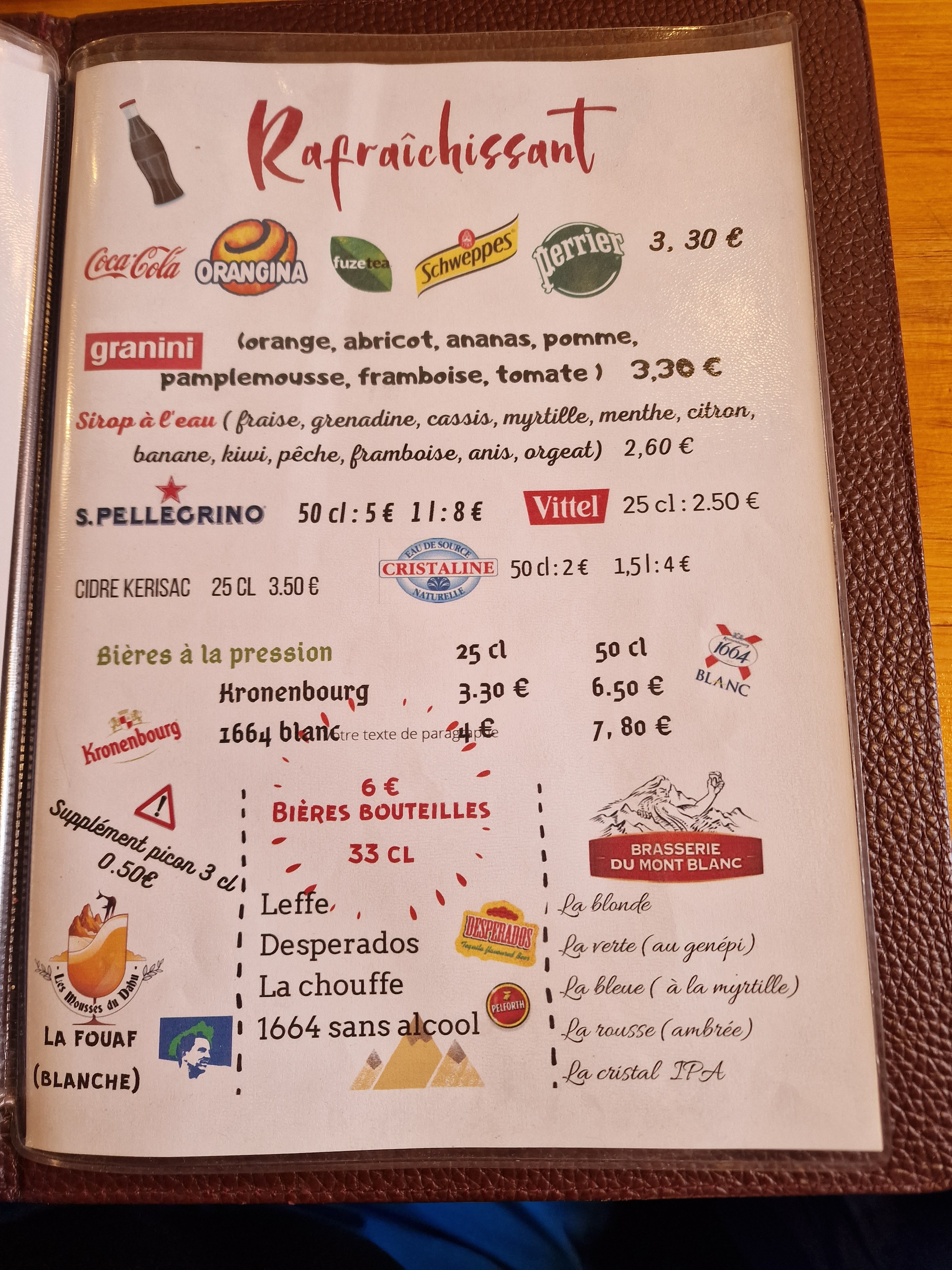 La vue est exceptionnelle ! Le service était impeccable et nous avons bien mangé! Bière , diabolo tartiflette salade savoyarde et une tarte myrtilles , 57 euros pour deux personnes